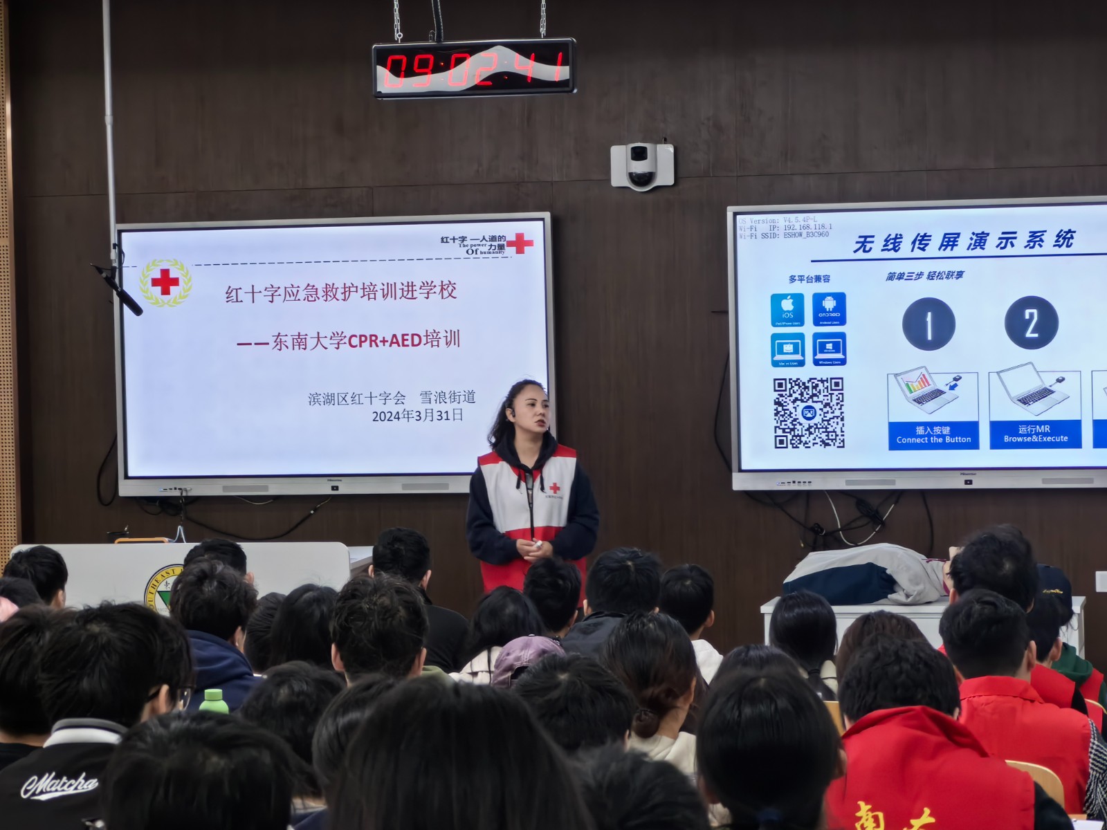 为加强校园安全建设,促进心肺复苏急救知识的推广与普及,提升学生们自救互救能力。3月31日上午,雪浪街道红十字会联合东南大学无锡国际校区举办了一场CPR+AED应急救护取证培训,东南大学青年志愿者协会的120余名学生参加培训。