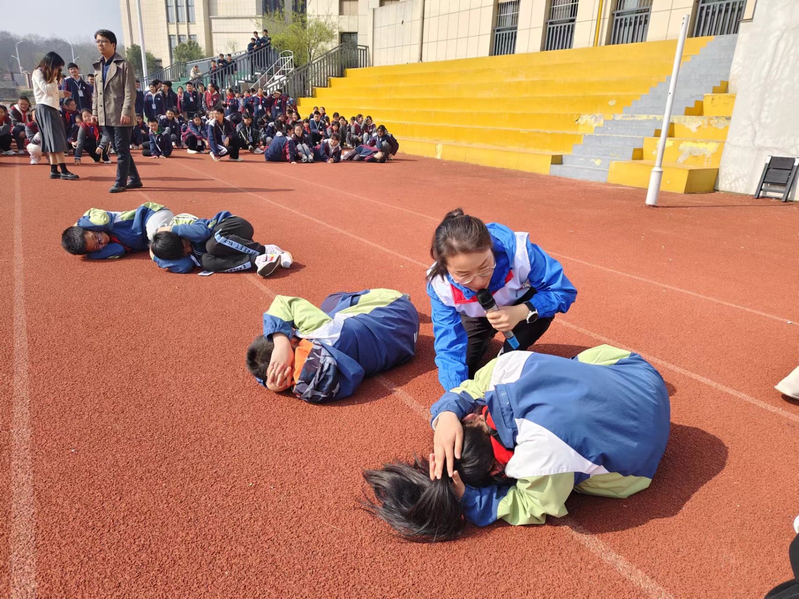 “在拥挤行进的人群中,如果前面有人摔倒,而后面不知情的人若继续前行的话,那么人群中极易出现像多米诺骨牌一样连锁倒地的拥挤踩踏现象。”市红十字会救护师王珊娜以国内外发生的惨痛踩踏事件开篇,借助大量的视频和照片让同学们切实认识到踩踏事故的可怕,随后,重点讲述了应当如何预防校园踩踏事件的发生,以及遇到踩踏事件该怎样自救、自护,并请同学上台直观演示:紧急侧卧,双手扣颈,护住头部,蜷曲成团,并腿收拢,绷紧全身。