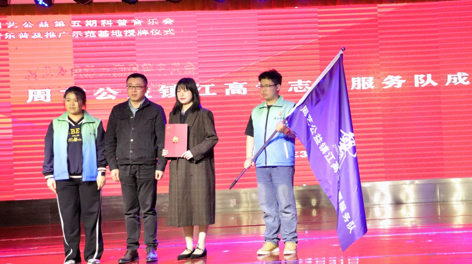 3月31日,镇江市文化广电和旅游局、镇江市红十字会、镇江市高等专科学校、江苏第二师范学院音乐学院、镇江周艺公益服务中心联合开展周艺公益科普音乐会暨音乐普及推广示范基地揭牌仪式。