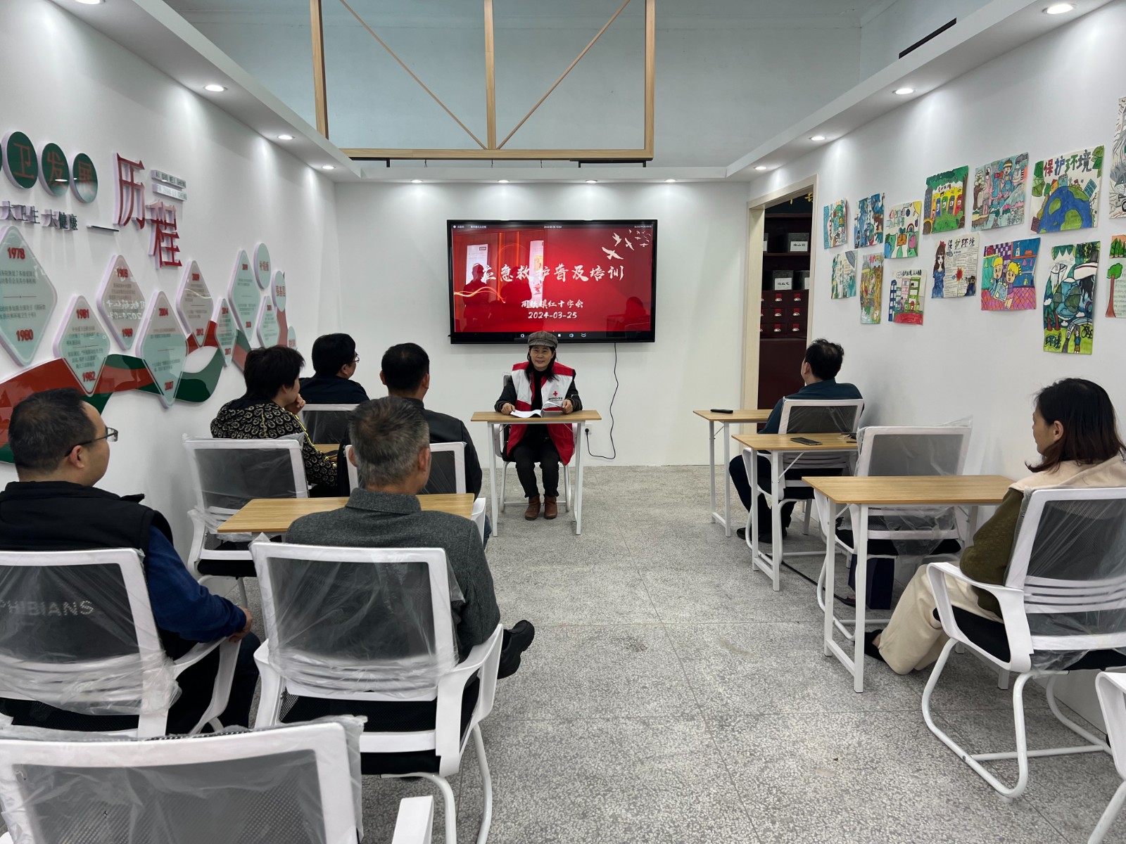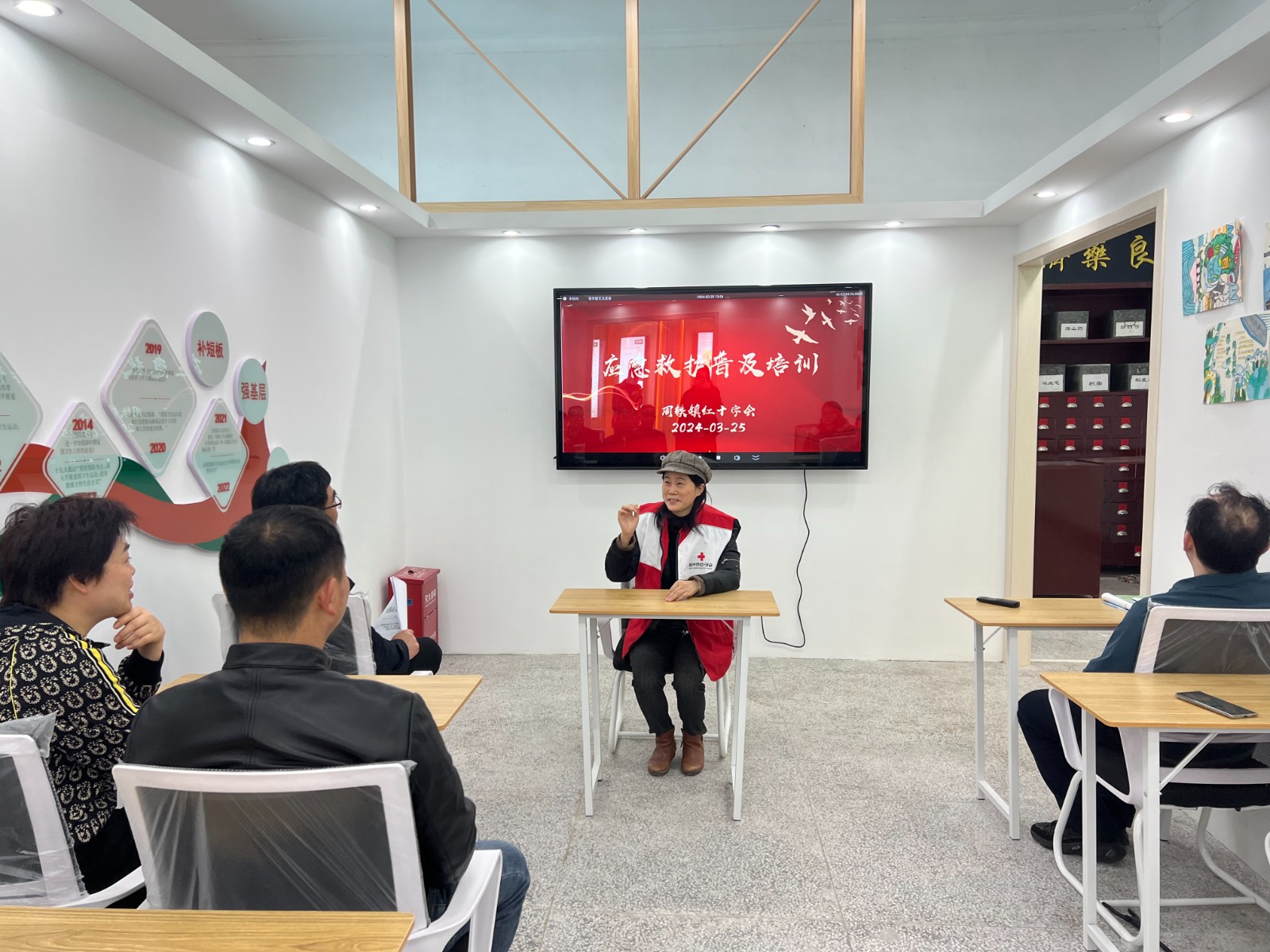 周铁镇红十字会和镇社事局党支部开展“赓续红色血脉 牢记初心使命”主题党日活动“党徽闪耀我学急救”。现场体验辅学,结合实际,组织党员走进周铁镇老街爱国卫生基地参观学习,做到不忘初心、牢记使命。以身作则、以讲促学,普及应急救护知识,让党员认识到日常生活中意外伤害很难避免,在意外事故状况下应急救护是抢救生命不可或缺的技能。这次普及培训主要培训内容:一是止血、包扎、骨折固定、伤员搬运创伤救护四项技术;二是心肺复苏、AED使用基本技术;三是中毒(化学和食物)、触电、溺水、烧伤等意外事故救护知识和技能;四是公共安全、防灾避险基本知识技能等。