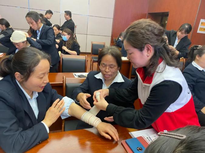 培训中,讲师讲解了中暑、触电、烧烫伤、动物咬伤等预防和救治方法,并重点围绕心肺复苏、气道异物梗阻急救、意外伤害与创伤包扎、止血等常见常用的救护知识、救护技巧和注意事项等相关知识进行了详细讲解,并针对可能遇到的各种紧急情况,采取现场讲解、示范、互动相结合的方式,进行实际操作和互动演练。
