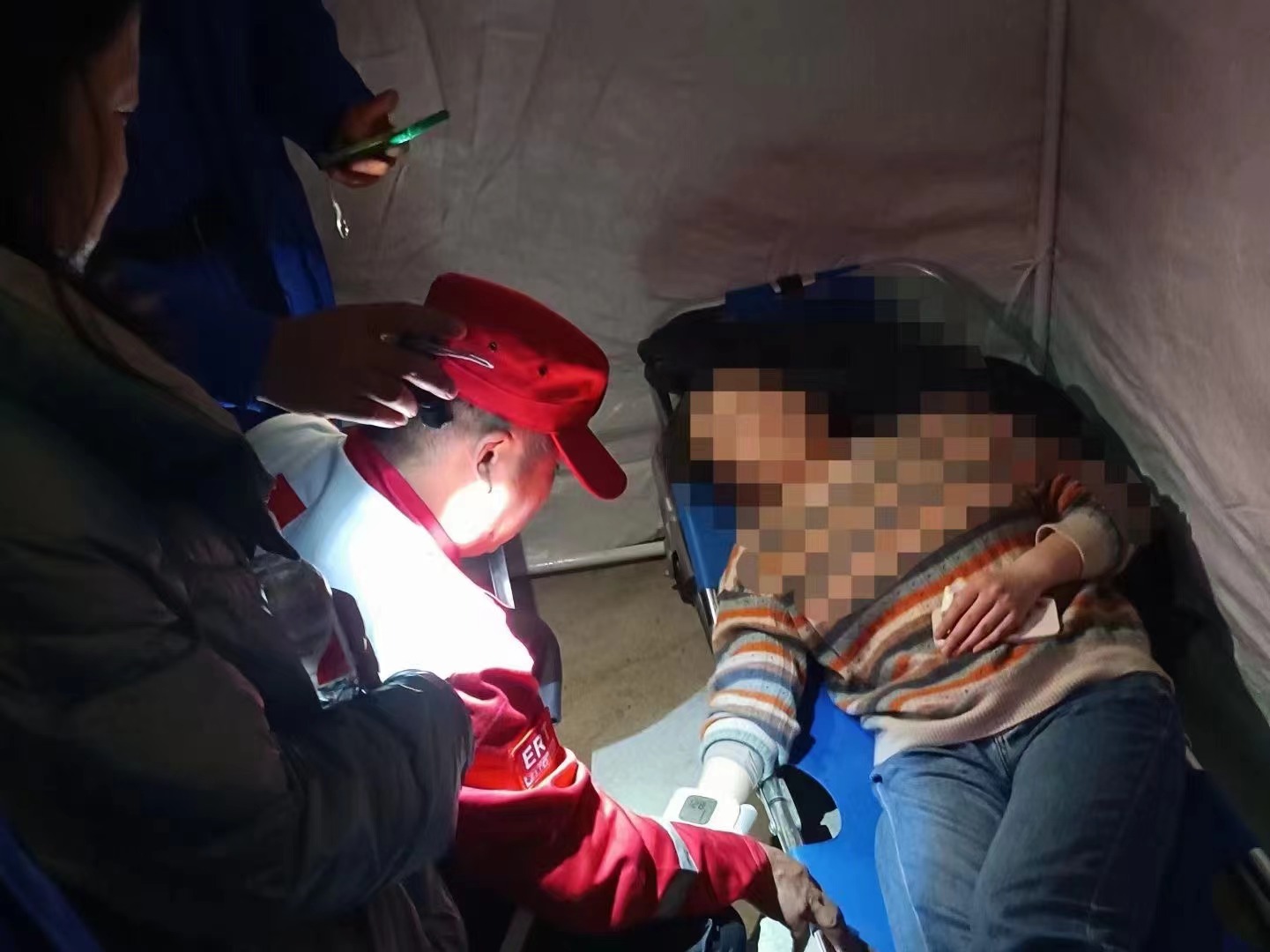 同时,红十字会在山下设立红十字应急救护站,组织红十字会应急救援队数名队员向受伤的群众进行应急救助。