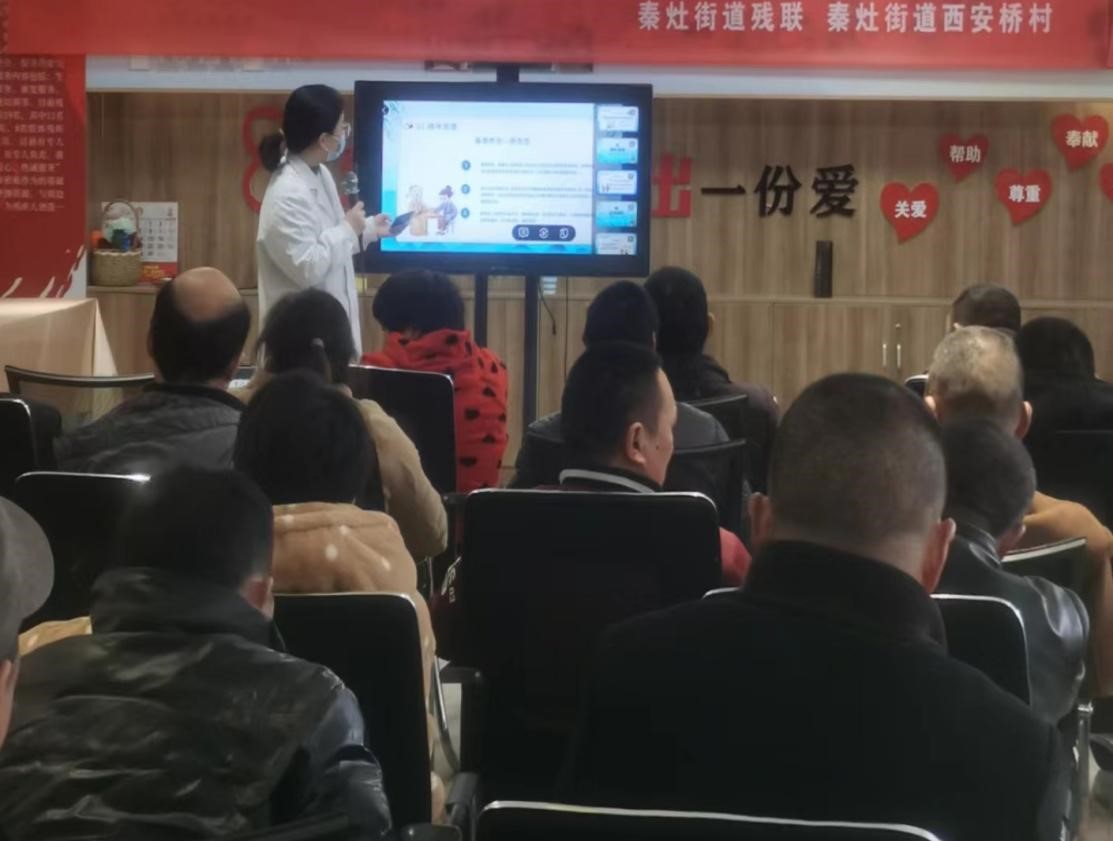 活动当天,来自秦灶街道社区卫生服务中心的专家们早早地来到了残疾人之家,他们带来了丰富的医学知识和实践经验,准备为残疾人朋友们提供一次全面而深入的慢病防治知识普及。活动现场布置得温馨而有序,不仅有专业的医学讲座区,还设置了义诊区,方便残疾人朋友们直接咨询和接受初步检查。
