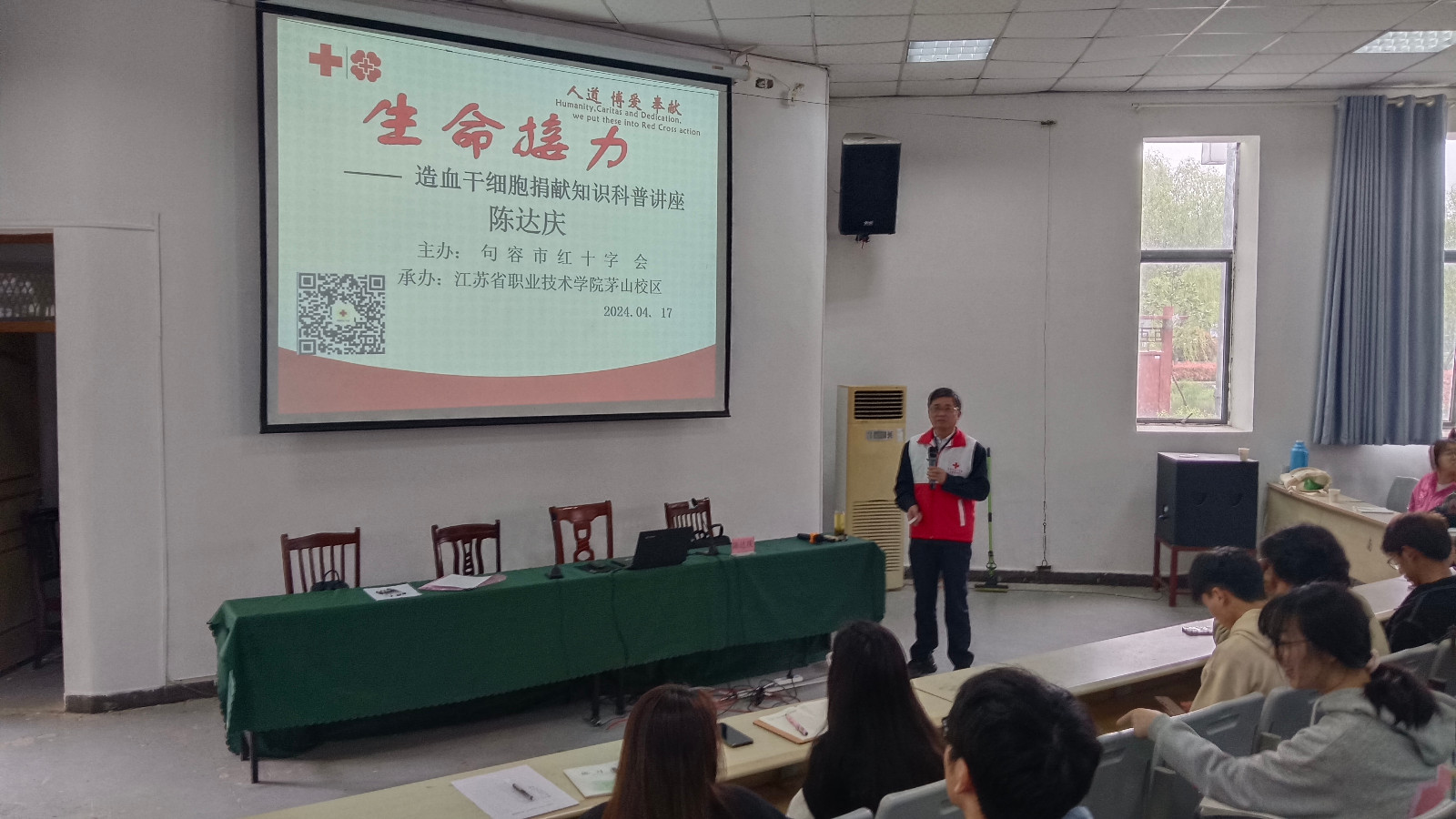 17日,市红十字会生命接力讲师陈达庆来到江苏农林学院茅山校区,举办“生命接力——造血干细胞捐献知识”科普讲座,该校区220多名大一新生及部分老师参加。