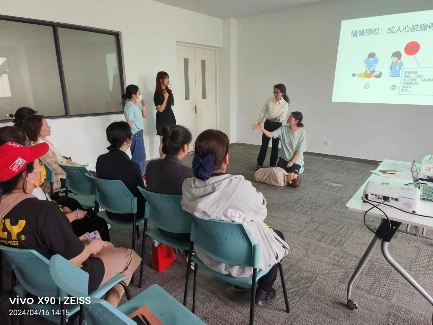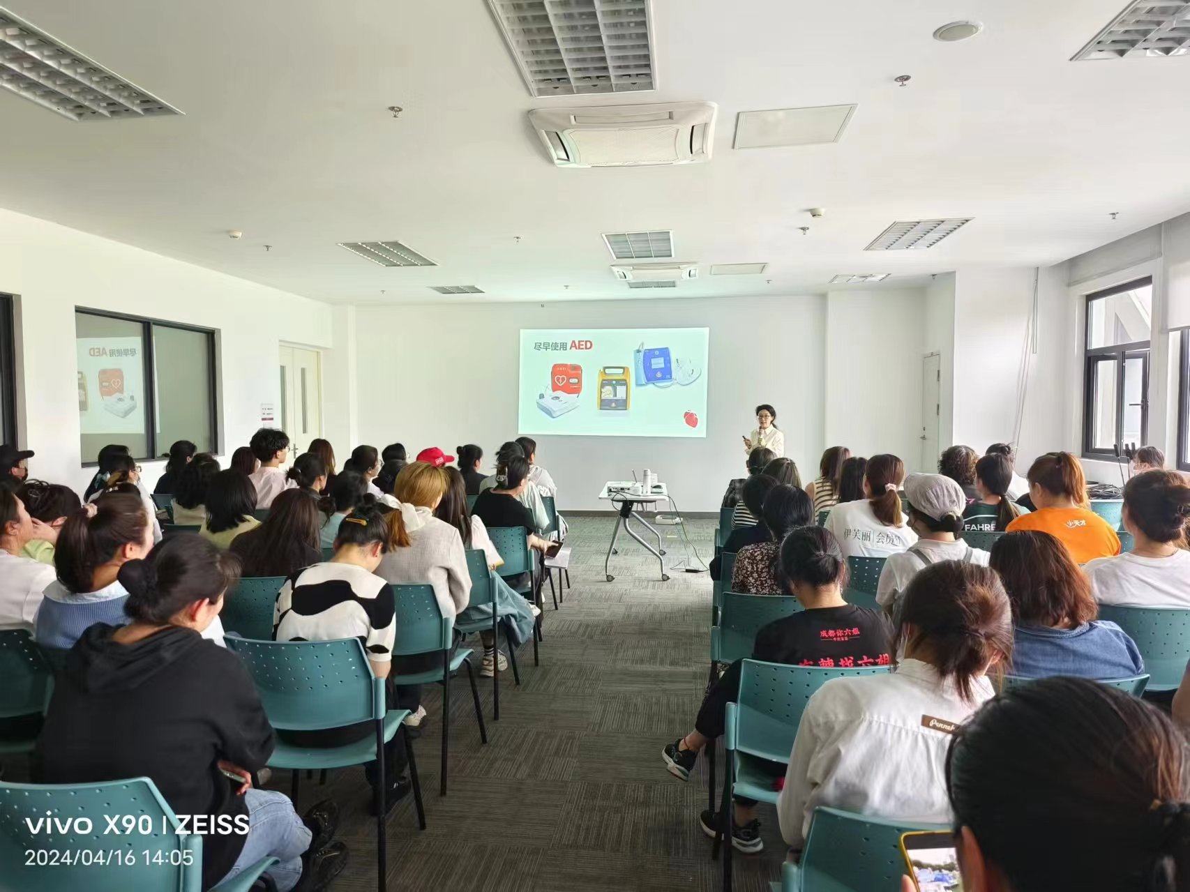本次救护培训邀请了浒墅关镇社区卫生服务中心刘俊彦医生,刘医生除了是辖区卫生服务中心的一名医生,她还有一个身份是一名红十字救护培训师,从2023年开始加入应急救护培训队伍,在辖区内为企业员工、学校师生、辖区居民等开展应急救护培训。刘医生强调“救人是在一念之间,救命则需一技在身”的急救理念和“时间就是生命”抢救生命就是和时间赛跑的急救精神。她结合日常生活和突发事件,分别就急救基础知识、急救重要性、心肺复苏术、海姆立克急救方法等内容,为在场的学员们进行了细致的讲解。心扉复苏是重中之重她用理论和实践相结合围绕创伤、中毒、溺水、触电等引起心跳呼吸骤停,遇到这些突发情况进行科学的急救与护理。在实践操作环节中老师用安妮模型示范指导学员如何进行心肺复苏、强调进行心扉复苏用仰头举頦法充分开放气道、捏鼻子吹气、按压时要垂直向下。互动环节在邀请3名学员组成一个急救小组模拟救护场景。指导学员实践操作的步骤。第一步评估周围环境和自身安全、第二步判断是否需要实施急救、第三步呼救招人协助及第四步纠正体位实施抢救。三位学员分工合作,指定一位负责呼救打急救电话等,另一位负责周围寻找AED,最后一位实施心肺复苏。急救。呼救、抢救、使用AED,三位学员在老师的指导下完成整套高质量心扉复苏成功把“人”抢救。现场学员纷纷伸出手拿手机拍照和视频记录下操作步骤和动作。心扉复苏环节结束后老师就外伤出血和创伤其它部位的包扎方法,并手把手教学员进行头部和手腕部位的包扎。最后一个环节是成人和婴儿气道梗阻海姆立克急救手法。气道梗阻多因进食时谈话大笑,进食过快,吞咽过猛等将食物碎块吸入造成气道梗阻。在日常生活中发生的比较多,为此刘医生针对气道梗阻展开讲解,气道梗阻的表现特征面色青紫、不能发声、“V”形手势,呼吸停止。医生针对不同人群身高体重高矮及婴儿示范操作手法,动作要领是找到剑突与肚脐之间的位置向内向上用力冲击4-6次直到异物吐出。学员们从头至尾认真学习动作要领把重要点都记录在本子和手机上,培训结束学员一起为老师精彩讲课鼓掌。