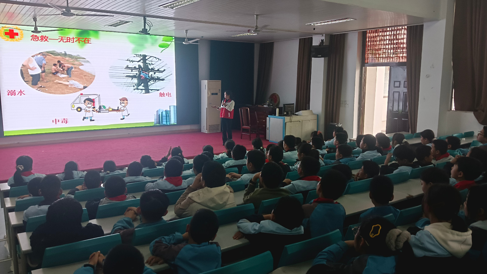 为进一步增强小学生意外来临时的救护意识,提升他们的自救和互救能力,防患于未然,19日,句容市红十字会救护培训讲师黄君君来到句容市青少年社会实践基地,为正在这里参加实践活动的茅山中心小学80多名学生举行应急救护培训。