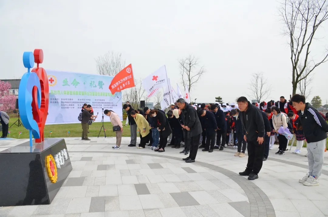 4月2日上午,由市红十字会、市文明办、市民政局主办,市新时代文明实践志愿服务促进中心等多家单位联合协办的生命∙礼赞——东台市人体器官捐献者缅怀纪念暨绿色清明宣传活动,在人体器官捐献者纪念园博爱广场举行。市红十字救援队、人民医院、中医院、义工联、五烈镇红十字服务队,市第一小学、苏东双语学校红十字青少年等160余人参与活动。市红十字会党组书记、常务副会长杨爱兵,市民政局党委委员王宏斌,市红十字会秘书长何斌出席活动。活动现场,集体为人体器官捐献者鞠躬默哀,并通过舞蹈、诗朗诵、敬献鲜花等形式,悼念那些在生命终点光荣谢幕的人体器官捐献者,表达对生命的尊敬、对奉献的感恩、对逝者的追思!