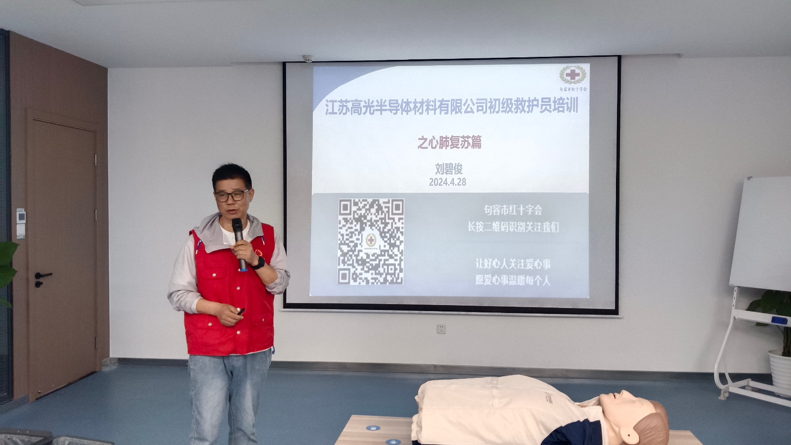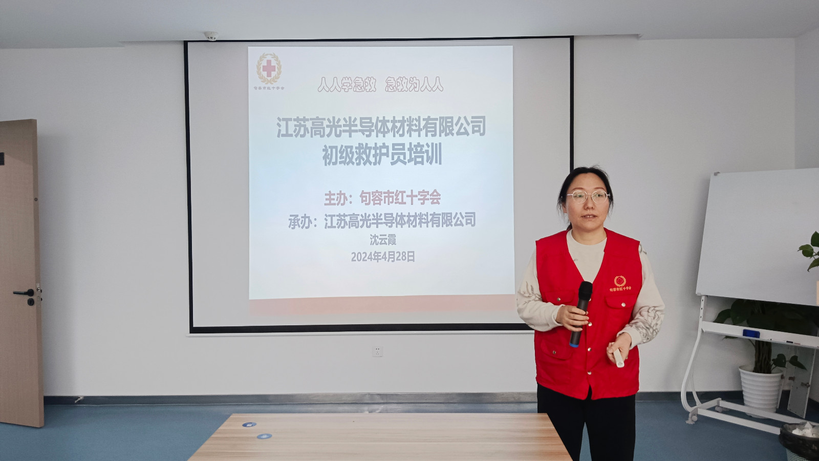 28日,句容市红十字会救护培训讲师刘碧俊、沈云霞来到江苏高光半导体材料有限公司,给该公司近50名职工带来一堂重要的培训课程——初级救护员培训。