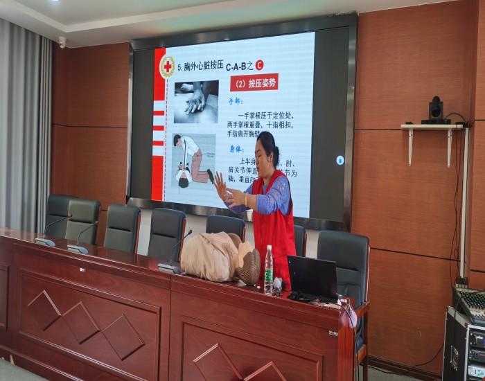 培训采取理论知识讲解和实际操作相结合的方式,用生动、形象的语言对应急救护新概念、心肺复苏理论和实操、气道梗塞急救法等进行了系统讲解,重点演练了气道梗塞急救法、心肺复苏等常用急救措施。参训人员认真倾听,现场气氛十分热烈。理论知识讲解演练完毕后讲师便让学员逐一练习,力争让每一个动作标准、到位。讲师也会在旁一对一指导,让大家查漏补缺,加深印象。