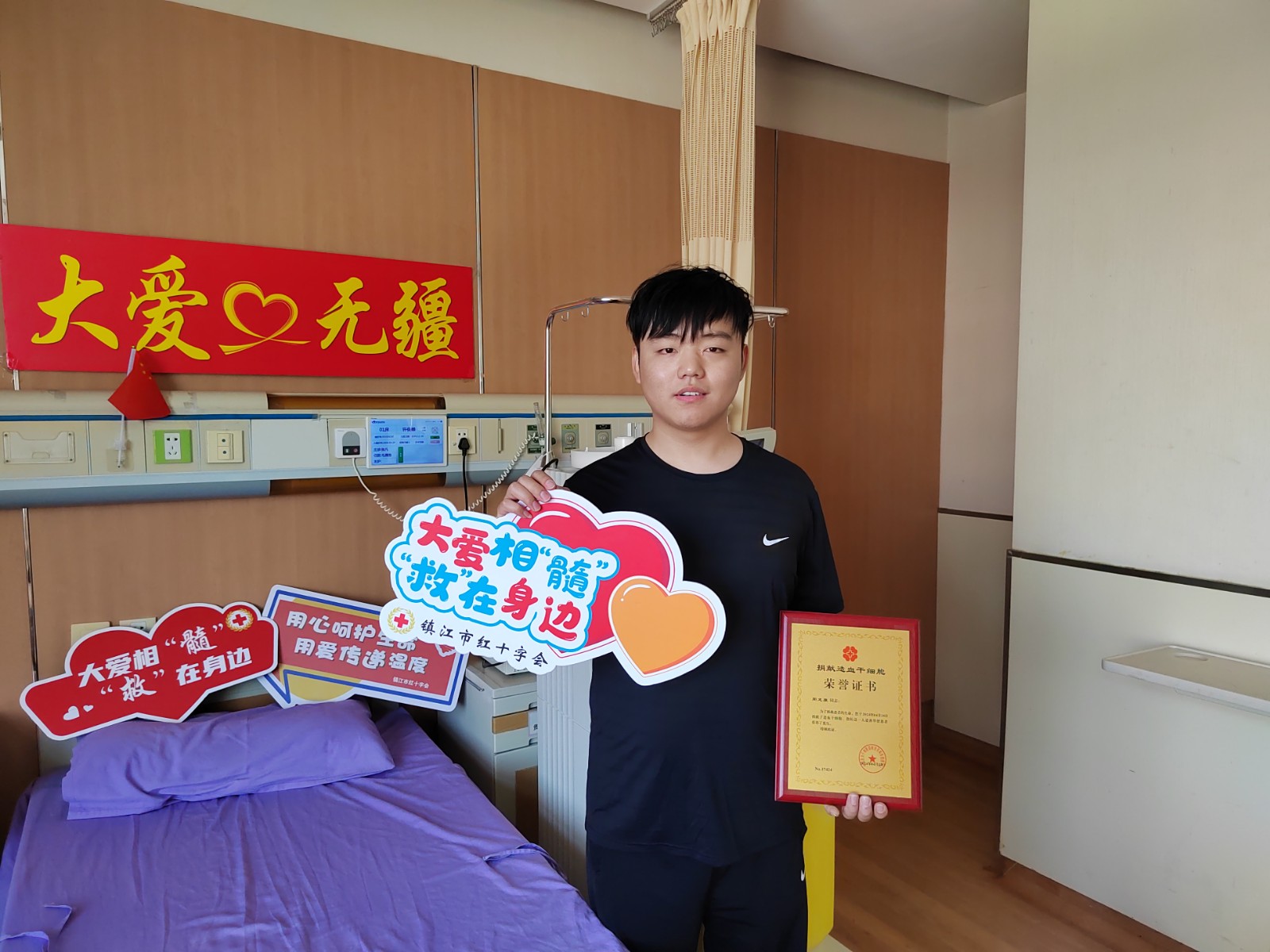 4月24日中午12时20分,周龙康完成采集,成为镇江市第120例造血干细胞捐献者,承载生命希望的284毫升造血干细胞混悬液将由专人送至患者医院。