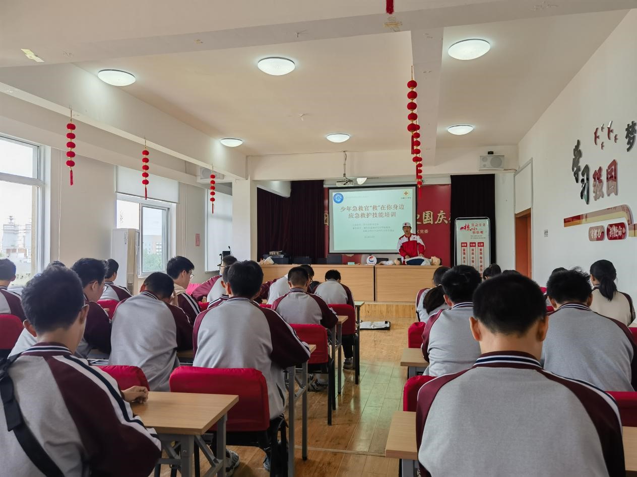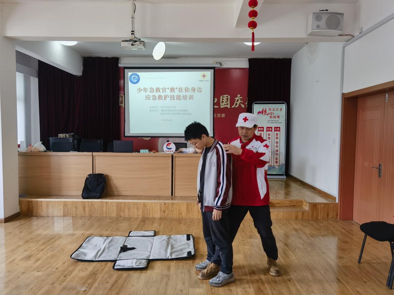 在“5.8”世界红十字日即将到来之际,城东街道新桥北村社区邀请中国红十字“会员之星”“全国无偿献血终身荣誉奖”获得者、江苏省“红十字志愿服务先进典型”“南通市慈善形象大使”红十字救护师资队员蔡震国,为结对通中班级学生开展“三献”知识宣讲和应急救护技能培训。
