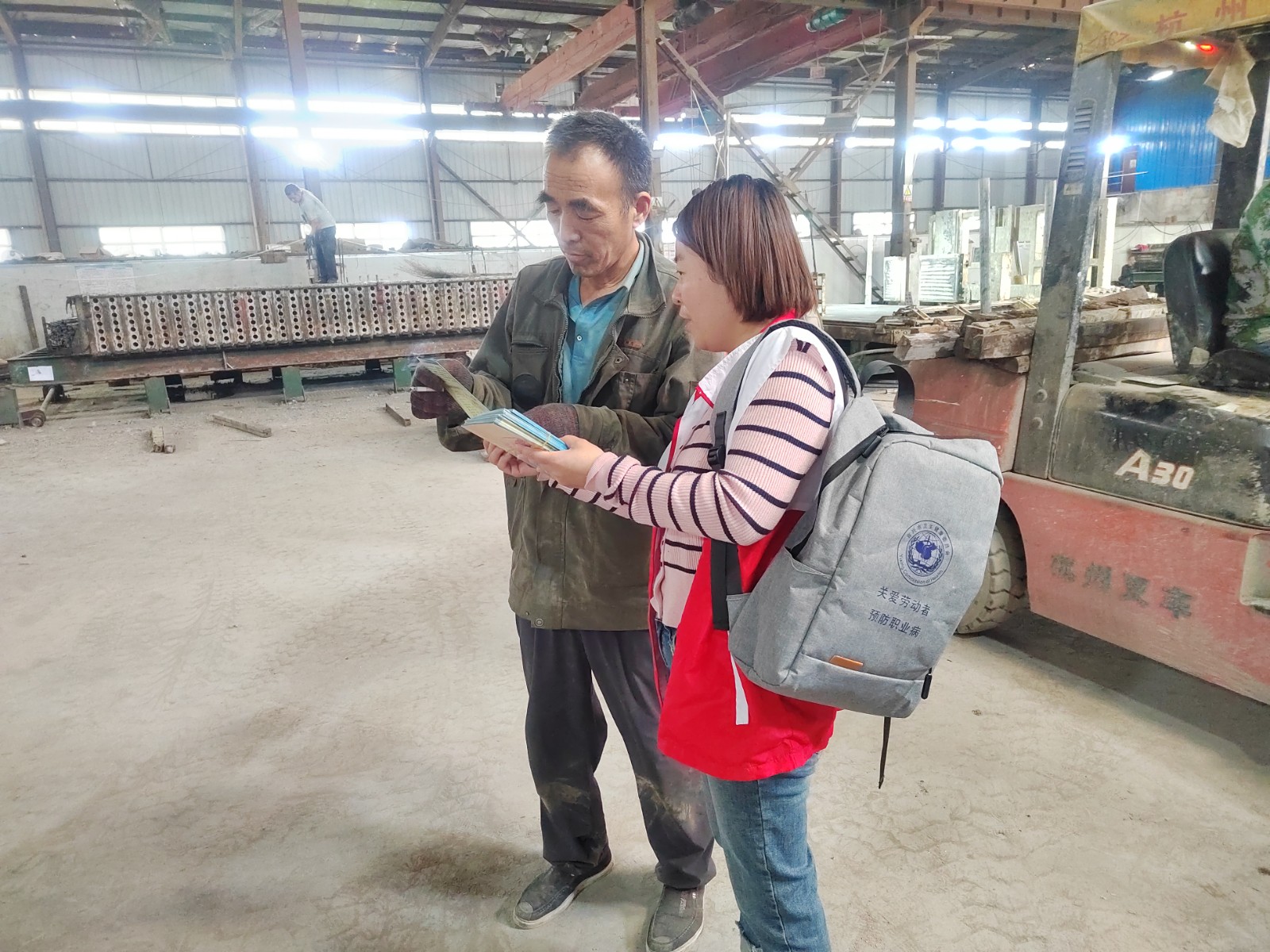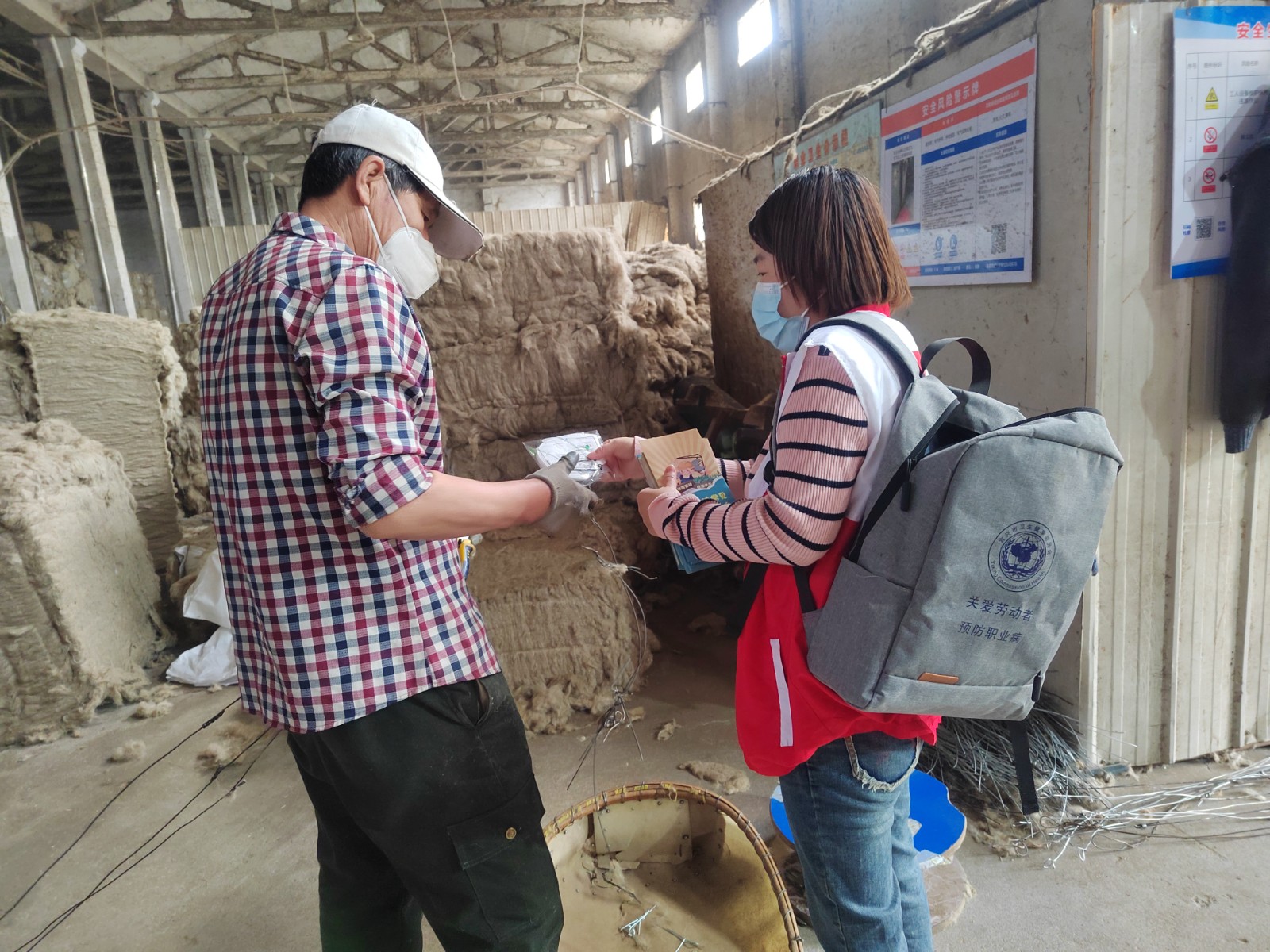 镇红十字志愿者向企业员工告知职业病危害,发放职业病防治宣传资料,向员工普及职业病种类、职业病危害因素等知识,进一步增强员工职业病防治意识。