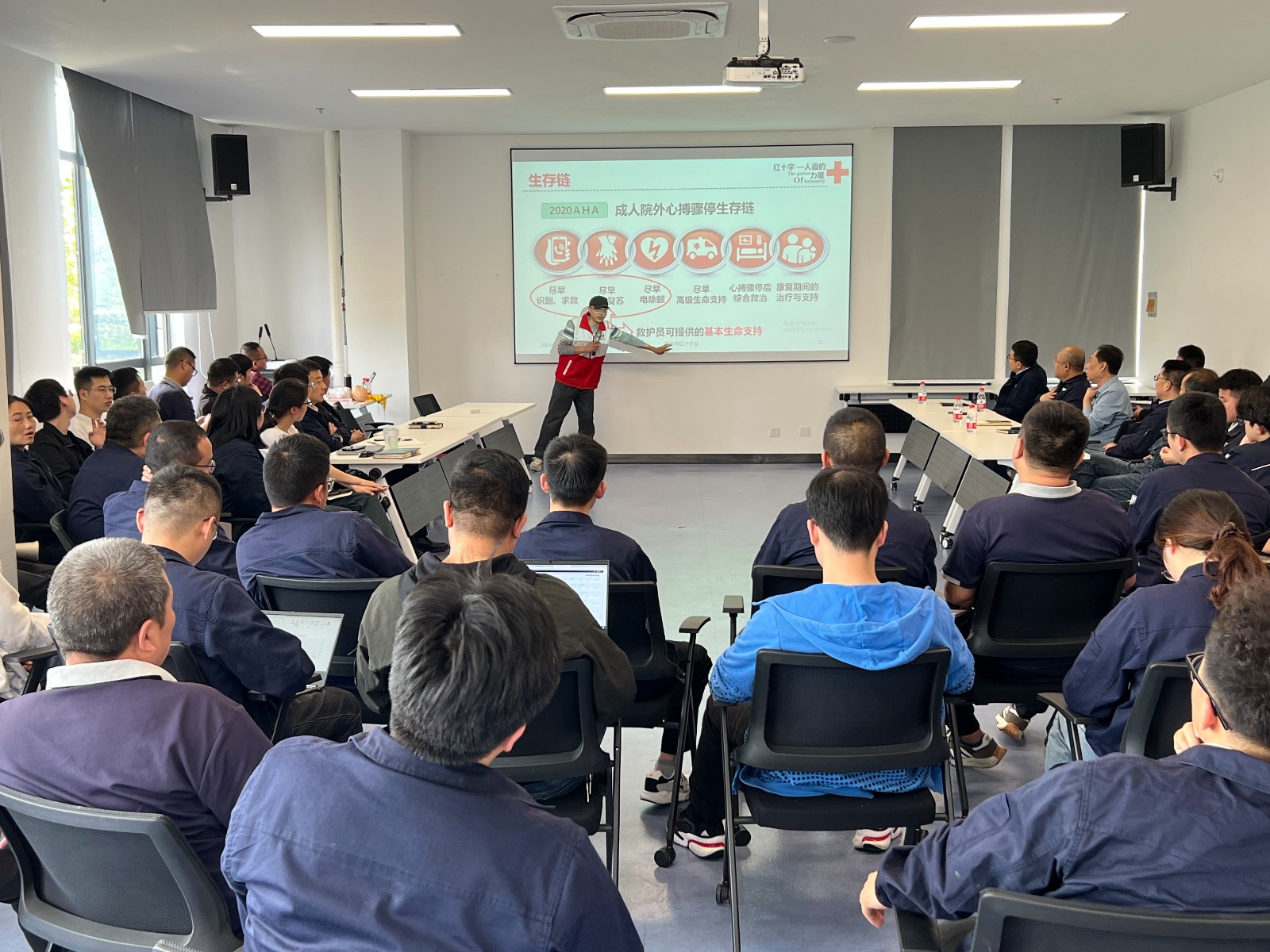 4月23日,常州市红十字会救护培训师资团队来到北汽重型汽车有限公司,为公司60名安全员和一线员工开展应急救护培训。内容包括心肺复苏、AED的使用及注意事项,气道梗阻排除,以及一些常见急症的处理方法。