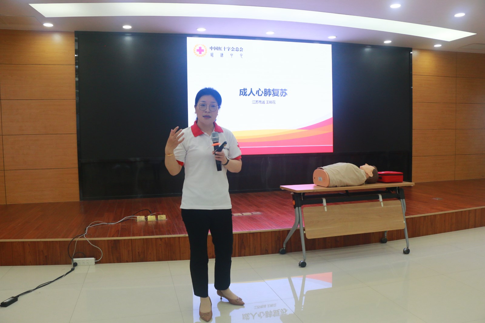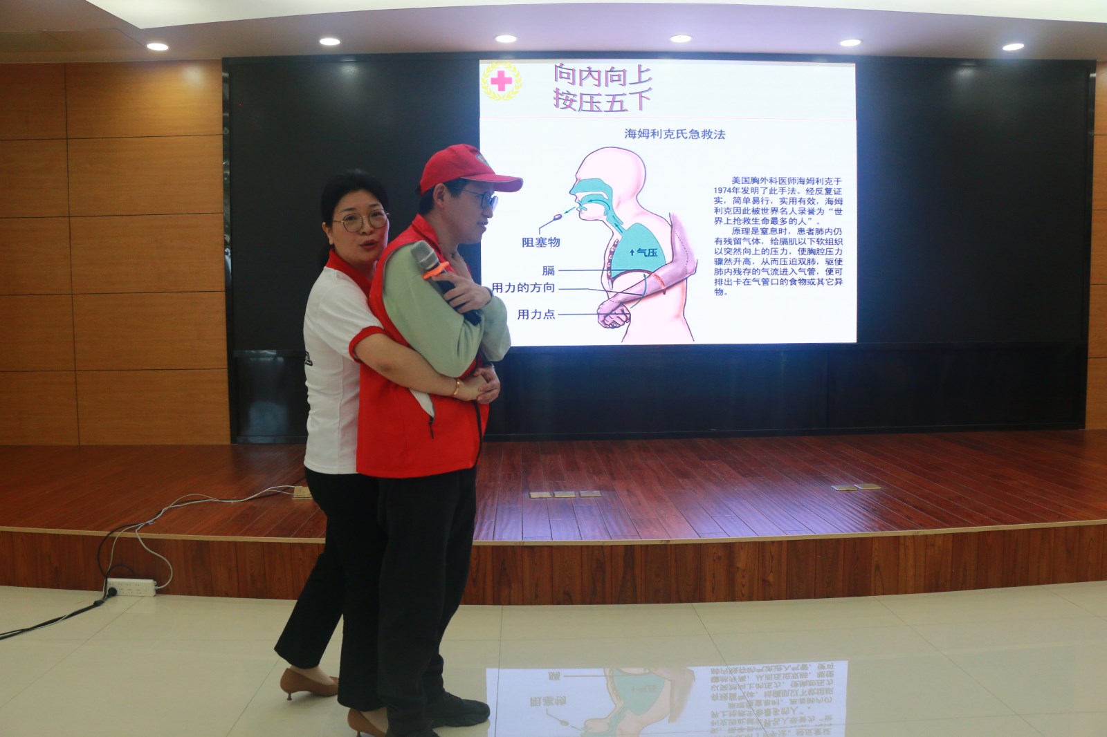 活动中,收看习近平总书记会见红十字国际委员会主席斯波利茨报道,并学习习近平总书记关于红十字事业重要指示精神,强调“红十字不仅是一种精神,更是一面旗帜,跨越国界、种族、信仰、,引领者世界范围内的人道主义活动”。赈济救援队队员、救护师资王锦花讲授了应急救护知识,从气道异物梗阻发生后第一时间的正确施救,到心跳、呼吸骤停后如何在黄金时间4-6分钟内开展心肺复苏术进行了详细的阐述,学员们积极互动,得到了一致好评。