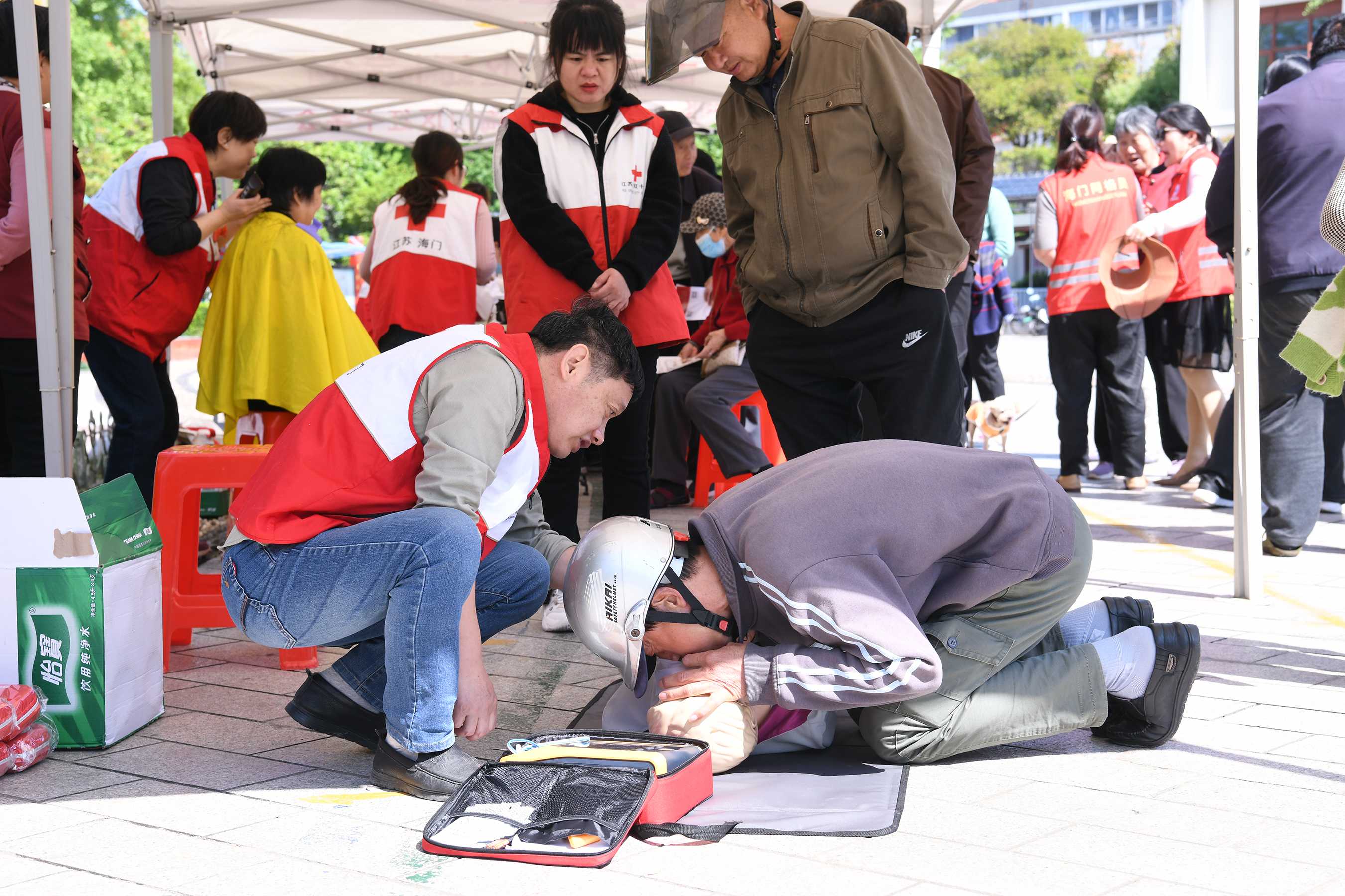 今年的5月8日是第77个“世界红十字日”,区红十字会联合海门街道、区教体局、区卫健委、区中医院等部门单位在海门街道解放西路社区博爱家园开展“红十字博爱周”活动,进一步扩大红十字会社会影响,凝聚更多的社会力量参与和支持红十字事业,以实际工作成效庆祝中国红十字会成立120周年。区政府办公室副主任朱华骅,海门街道办事处副主任、红十字会会长马丹,区教体局、区卫健委相关负责同志,部分博爱家园红十字志愿者代表、社区干部群众参加活动。活动由区红十字会党组成员、副会长姜乐主持。