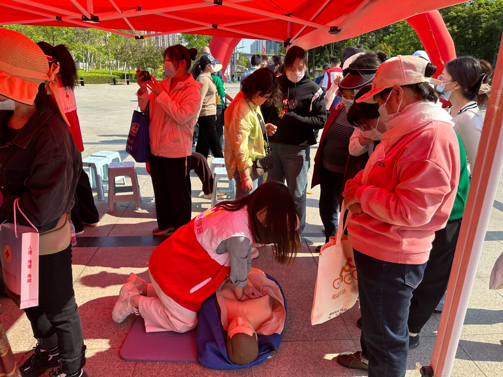 忙碌的红十字志愿者们通过发放宣传资料向群众开展“三献”宣传动员,现场演示应急救护和防灾减灾知识普及以及“5·8人道公益日”网络众筹宣传活动,广泛宣传动员社会力量,呼吁广大群众参与“5.8人道公益日”活动,提升红十字品牌影响力。