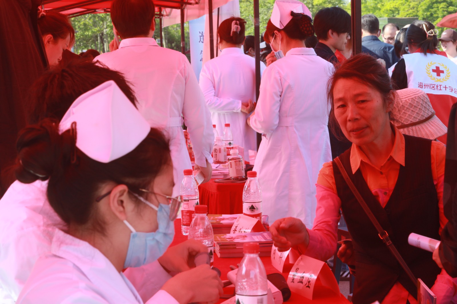 市、区红十字工作人员,各冠名红十字医疗机构和各镇街红十字志愿者共约200人参加了活动。活动现场,市红十字会、海州区红十字会、市第一人民医院、市第二人民医院、市妇幼保健院、市第四人民医院、市中医院、市眼科医院等数十个展台依次展开,在现场开展义诊、急救培训、便民服务等活动。