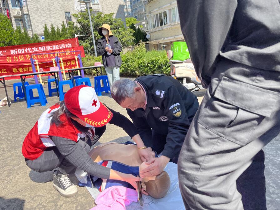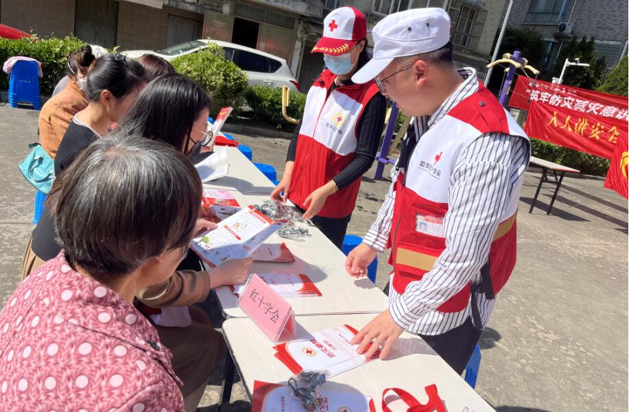 为了纪念第77个“5.8”世界红十字日,提高社区居民的防灾减灾意识和自救互救能力,5月10日上午掘港街道红十字会结合5.12防灾减灾日,联合县红十字会、县地震局、县气象局,消防中队、街道安监局、灯塔社区等多个部门分别在时代广场、同业苑小区广场开展了“筑牢防灾减灾意识 共建安全和谐社区”系列宣传活动。活动现场,红十字志愿者们为广大居民发放了市民安全救护手册、“三献”及防灾减灾宣传折页,并现场用模拟人演示了心肺复苏,许多市民都积极参与,亲手体验了急救技能的魅力。通过此次活动,不仅提高了公众对红十字精神和防灾减灾的认识,更是增强了人们的自我保护意识和能力。