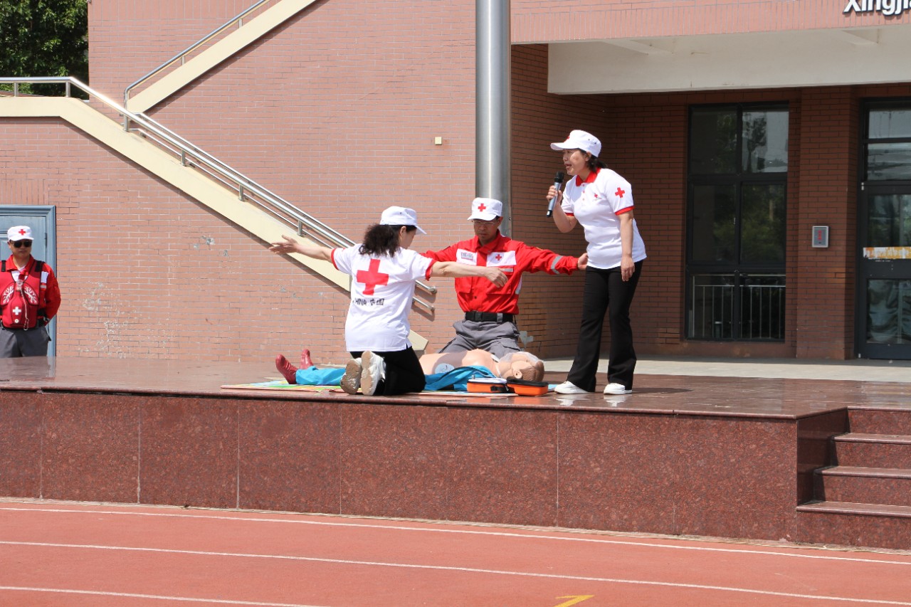 演练现场模拟了搜救滞留学生现场,搜救队员避震后,紧急集合,向指挥部进发,指挥长命令全体搜救队员开始做搜救前准备,各搜救队员演练搜救。搜救组人员陆续从教学区内将受伤的人员救出,学校医疗救护组对受伤学生做紧急救护处理,市红十字会救援队对伤员进行心肺复苏并演示、讲解海姆立克急救法。