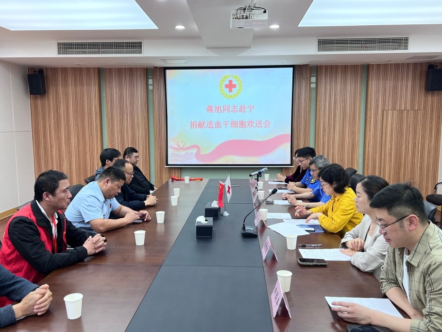 5月9日,月城“00年”小伙蒋旭爱心出征,赴南京明基医院捐献造血干细胞,为一名13岁白血病小女孩送去“生命火种”,他将成江阴市第25例、无锡市第106例造血干细胞成功捐献者,江阴市红十字会为蒋旭赴宁捐献造血干细胞举行了欢送会。