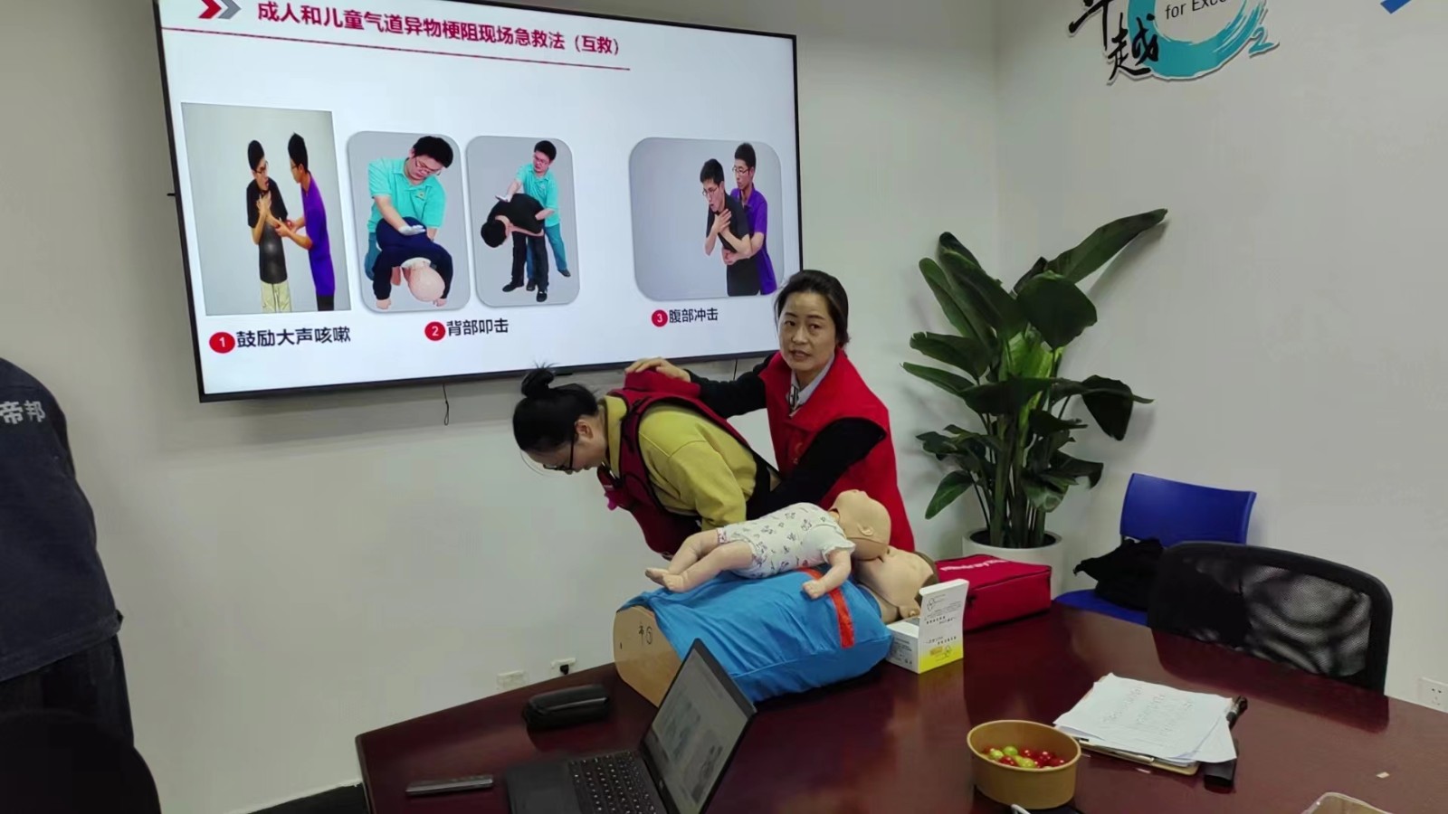活动中,授课老师们认真讲解了心肺复苏、气道异物梗阻、自动体外除颤器(AED)操作方法等常用的应急救护技能。学员们还在老师的指导下借助教学模拟人、AED训练机等器材进行了实地演练,切实掌握了相关应急救护技能。