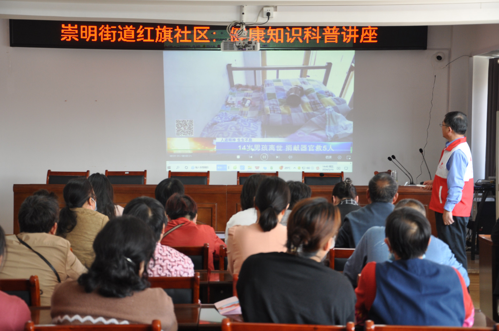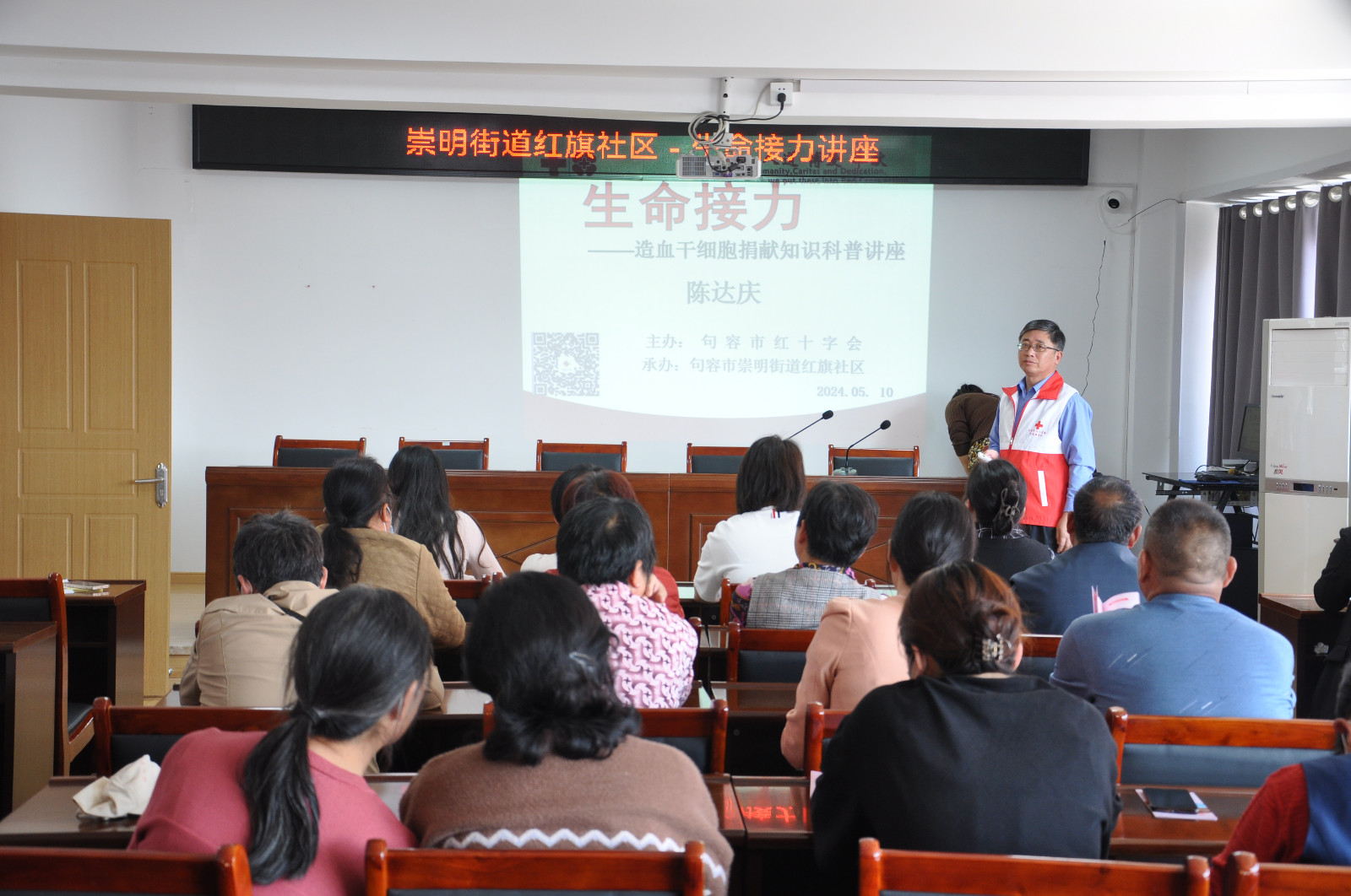 为弘扬“人道、博爱、奉献”的红十字精神,让社区居民更多地了解无偿献血、造血干细胞捐献、遗体和器官捐献的相关知识,10日,句容市红十字会生命接力讲师陈达庆走进红旗社区开展生命接力知识讲座,30多名社区居民参加。