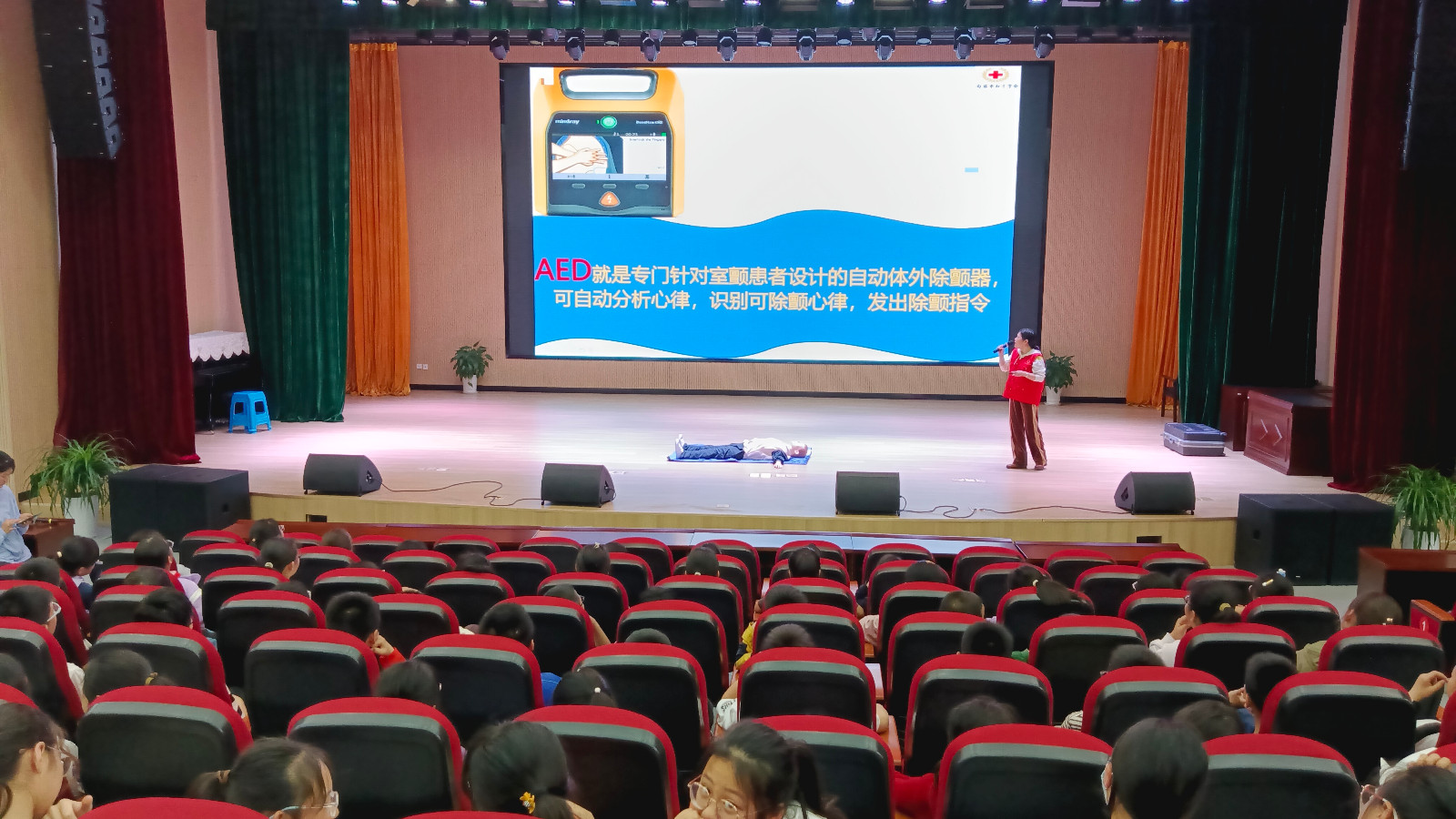 培训中,陶金枝运用“理论+实践”相结合的方式,为学生们讲解了心肺复苏、AED机的操作以及海姆立克急救法、烫伤、溺水、触电等应急救护相关知识,通过生动形象的画面讲解演示,让同学们全面、有效地了解了急救技能,不仅为大家传授了简单有效的自救互救技能,而且纠正了日常生活中常见的错误救护方法。