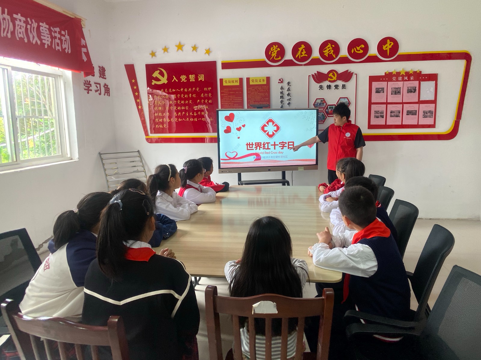 活动中,社区志愿者老师通过科普小课堂的方式向孩子们讲解了世界红十字日的由来及意义,并耐心细致地宣传了无偿献血、造血干细胞捐献、遗体和人体器官捐献以及几种常用的应急救护相关知识。