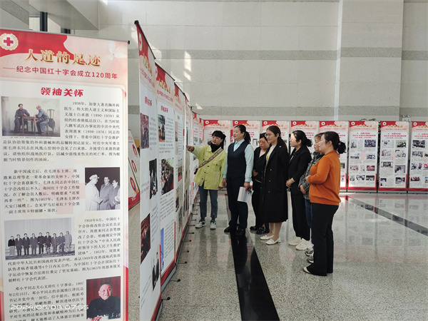 在市图书馆一楼大厅,举行“人道的足迹——中国红十字会成立120周年”图片展,回顾展示了中国红十字会120年发展历程。