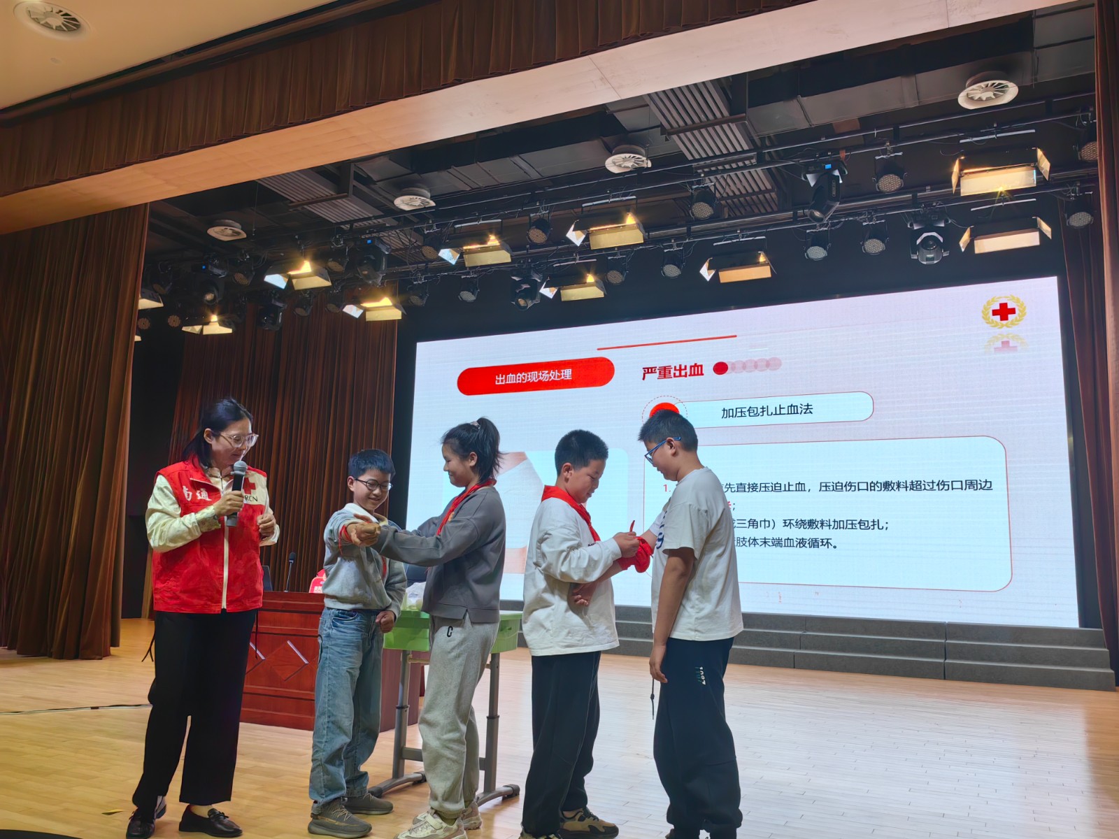 正值红十字博爱周,为热烈庆祝中国红十字会成立120周年,大力推进生命教育进校园,切实增强师生安全防范意识,预防和减少意外事故发生。崇川经济开发区红十字会、三桥社区红十字会在同和小学开展“救在身边+生命教育”系列活动,引导青少年理解保护生命的重要性,提高青少年面临突发安全事件的自救自护应变能力。