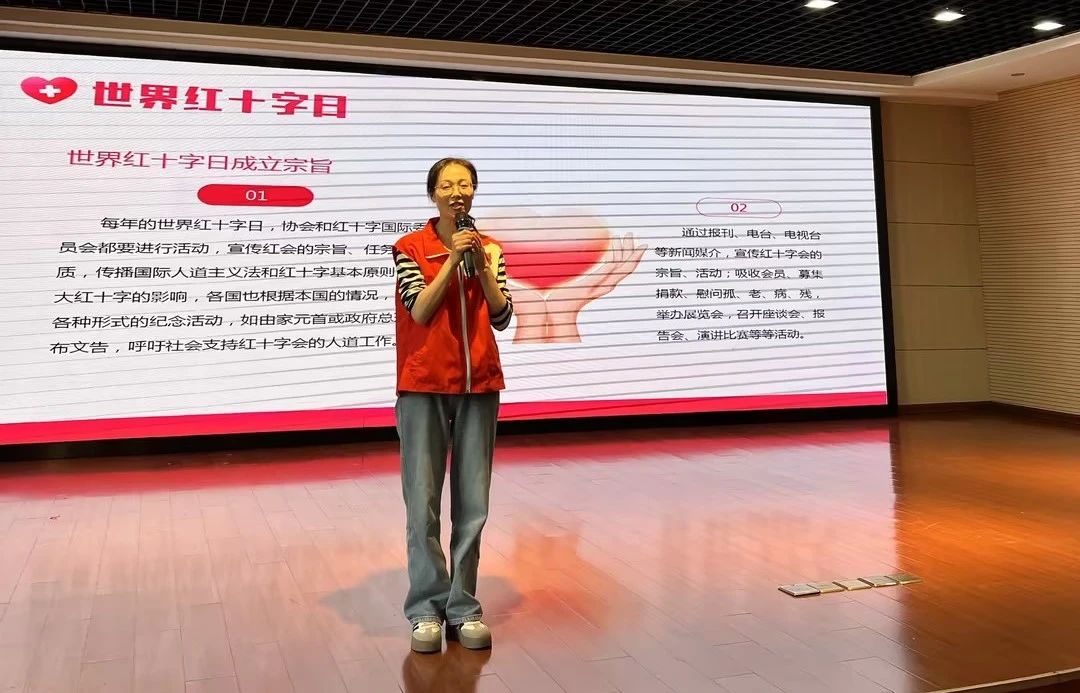 5月8日,是第77个“世界红十字日”,5月6日到12日,也是我国“红十字博爱周”,为进一步弘扬“人道、博爱、奉献”的红十字精神,提高学生的安全意识、普及应急救护知识和技能,增强同学们应对突发事件和意外伤害的自救、互救能力,学校红十字会、学生处邀请了红会工作志愿者陆燚阿姨于5月8日下午来校,开展了“赓续红十字精神,传承新时代星火”的专题知识讲座。