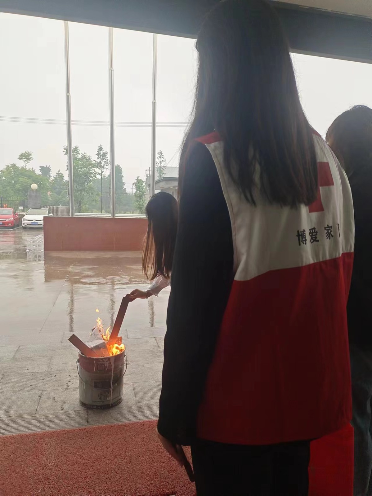 另一边消防演练区消防员拿着灭火器细心地为现场群众讲解使用方法和注意事项,如遇火灾该如何冷静应对,最快速度正确使用灭火器灭火。
