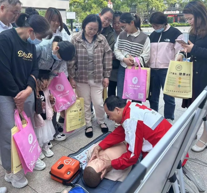 “中国好人”杨小飞现场进行健康宣讲,区红十字会五星级讲师徐茂林向前来参加活动的热心市民讲授了专业细致的急救知识,让市民在互动中学习到实用的健康知识和急救技能。