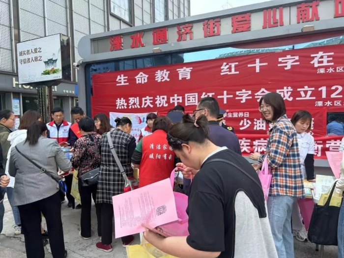 溧水区红十字会于5月8日上午在通济街广场举办了以“人道精神 生生不息”为主题的“红十字博爱周”活动。活动旨在进一步扩大红十字会的社会影响力,凝聚更多社会力量参与和支持红十字事业。