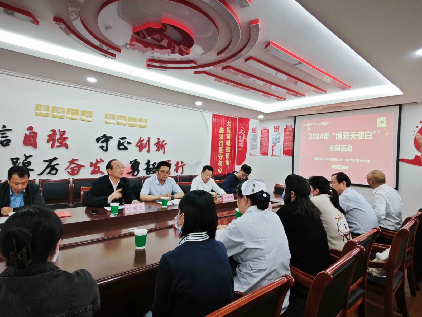 在第113个“5·12国际护士节”来临之际,为进一步弘扬“人道 博爱 奉献”的红十字精神,5月11日下午,区红十字会党组书记、常务副会长杨曙光和区卫健委党组成员、副主任刘勤一行来到区第二人民医院开展“博爱天使白”慰问活动。