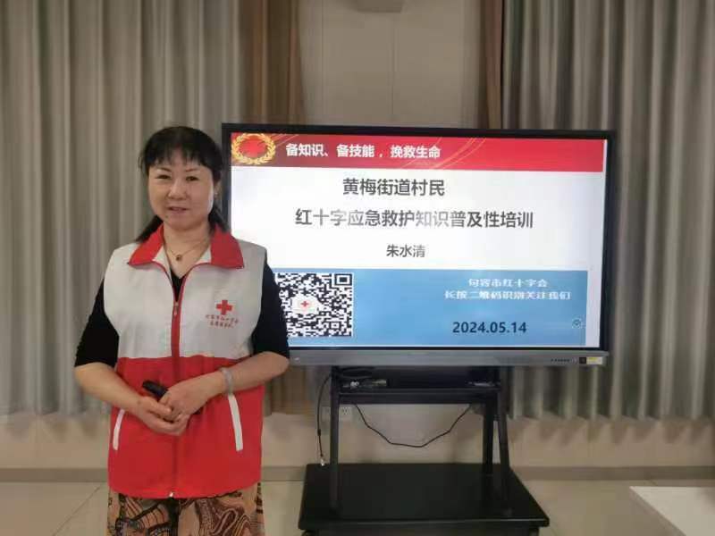 14日,一场应急救护知识普及性培训在句容市黄梅街道举行,句容市红十字会救护培训讲师朱水清为130余名社区居民讲授意外发生时的救命知识和技能。