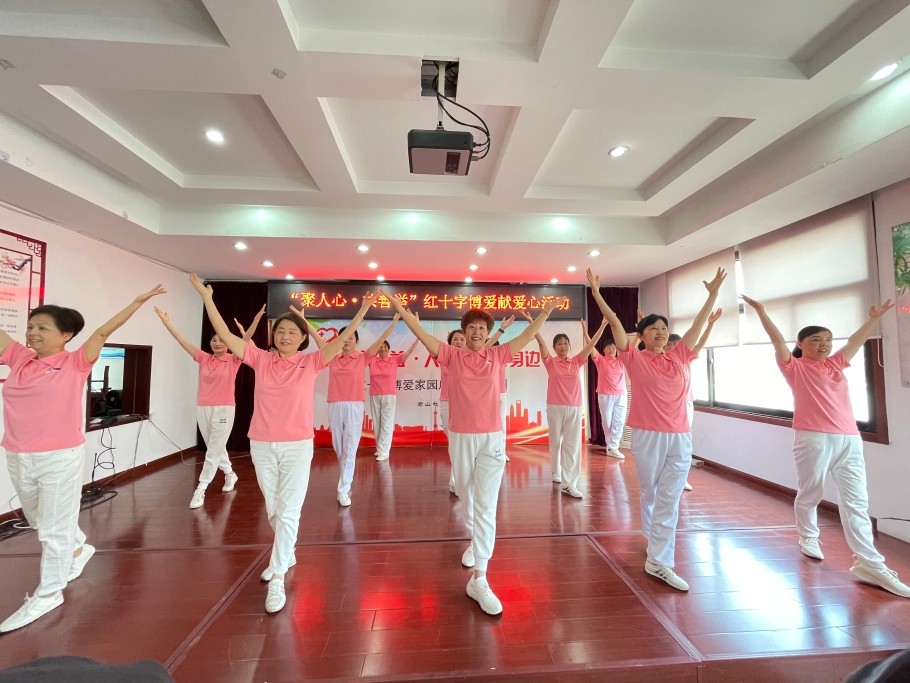 聚人心 共善举——红十字“益”起献爱心。 5月7日,君山社区开展以“聚人心,共善举”红十字博爱献爱心主题募捐活动,旨在通过实际行动助力红十字事业,携手扶危帮困。募捐活动中,君山社区红十字会动员公益互助联盟单位、社区干部、辖区党员、志愿者、居民进行捐款,通过线上+线下开展捐款,通过现金捐款和网上捐款两种方式奉献爱心,共募集爱心善款8240元。 社区舞蹈队以健身操形式为募捐助兴,让大家在奉献中体会快乐,为构建幸福和谐社区做出贡献。