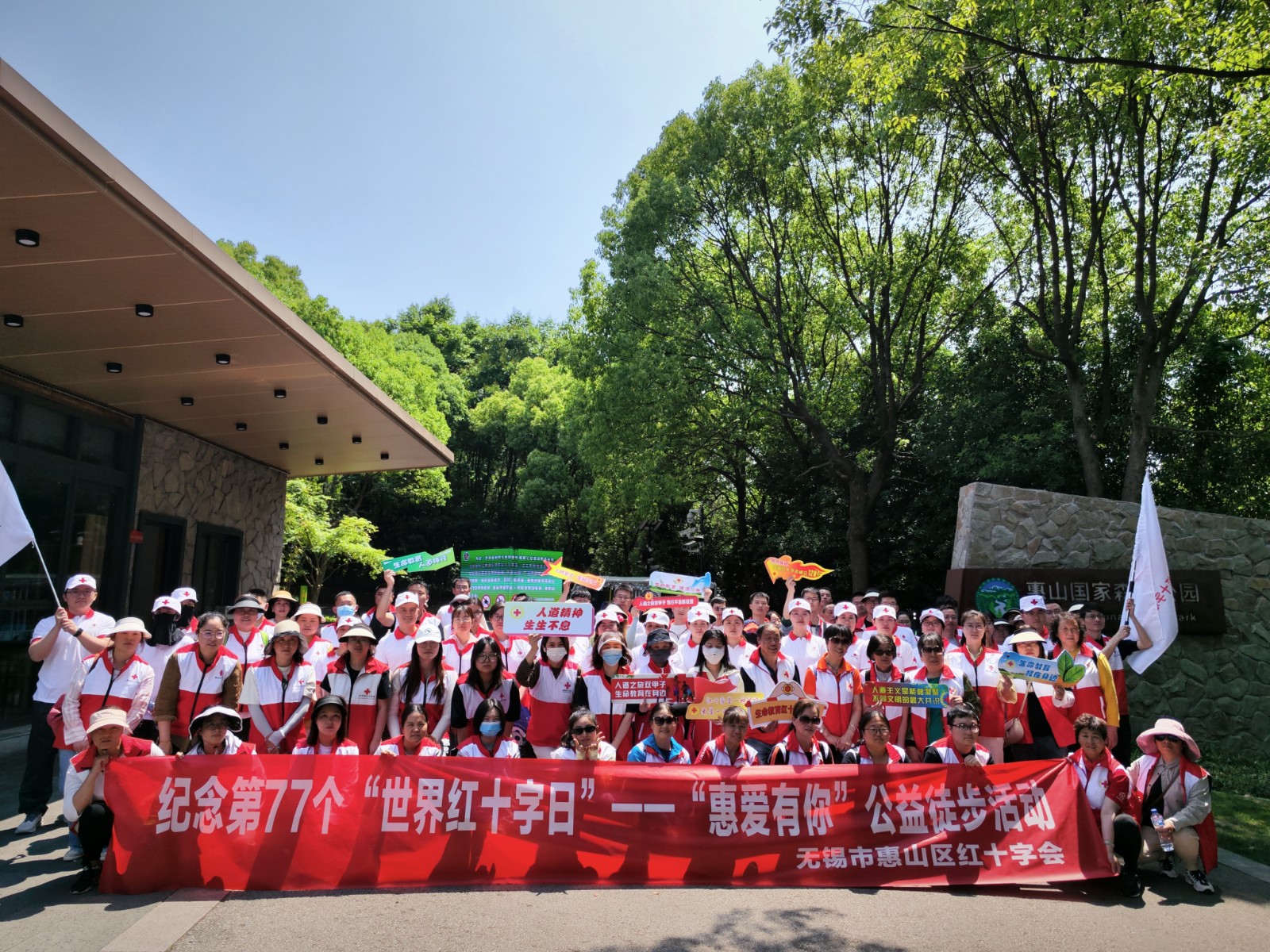 为纪念第77个“世界红十字日”,进一步扩大红十字会的社会影响力,凝聚力量,倡导“关爱生命”,弘扬“人道、博爱、奉献”的红十字精神,5月10日下午,惠山区红十字会组织110名红十字志愿者在惠山森林公园开展“惠爱有你”公益徒步活动。