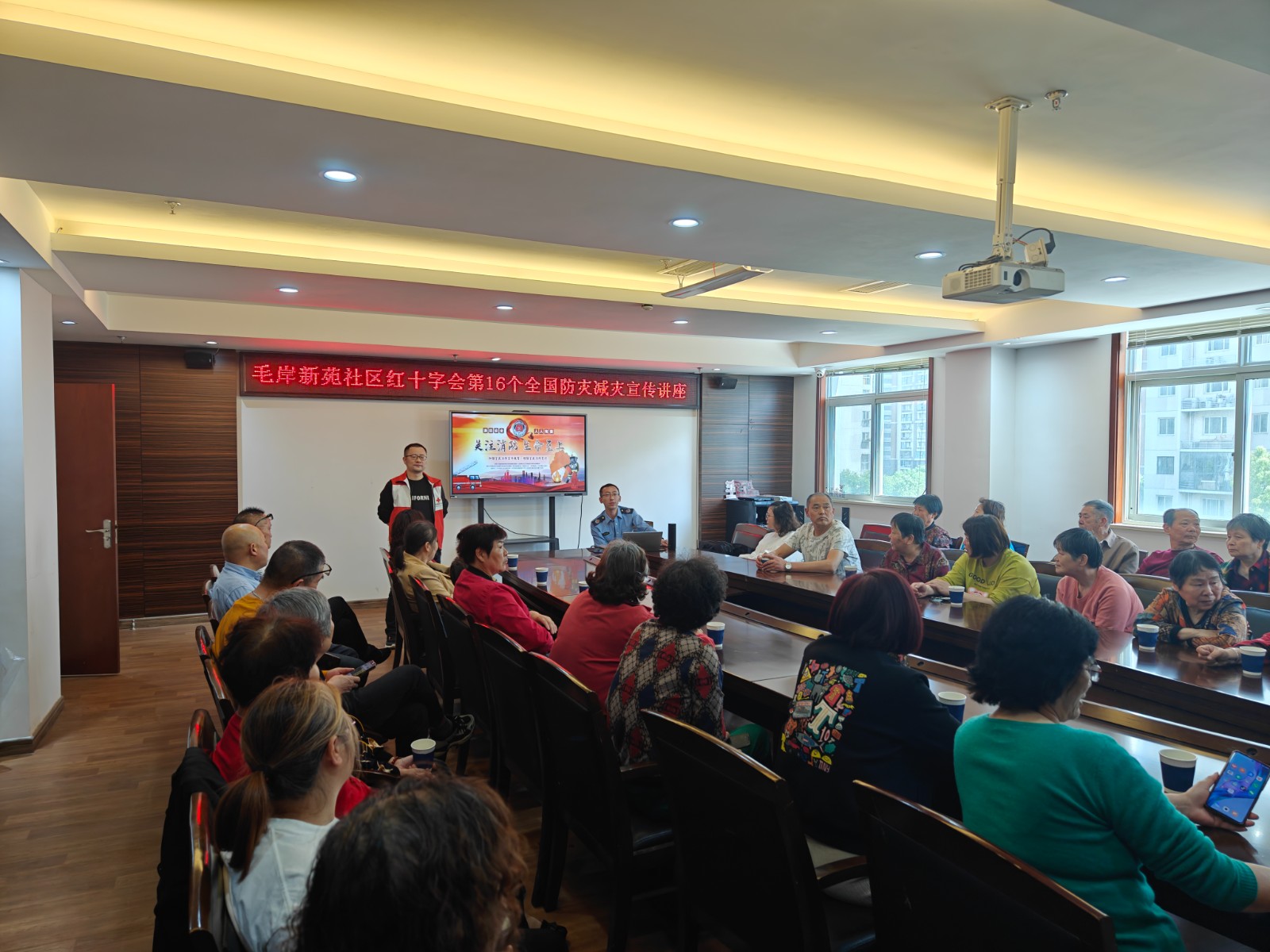 2024年5月12日是我国第十六个“防灾减灾日”。为提高辖区居民防灾减灾意识和能力,毛岸新苑社区红十字会组织红十字志愿者进社区,开展防灾减灾系列知识讲座。