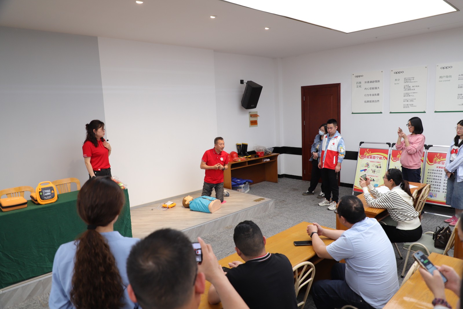 活动现场还开设急救公益课堂,公益老师们指导了大家面对突发情况时如何实施心肺复苏以及施救时如何使用AED除颤仪,以简明生动的话语和直观的演示,传授了急救知识,让现场人员受益匪浅。