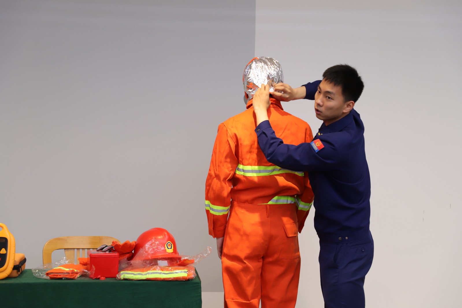 南禅寺消防中队教员首先向居民详细介绍了高层火灾产生的主要因素、高层火灾致命的原理、遇到高层火灾的情况下该如何自救和等待救援等知识,并现场展示了消防战斗服的功能以及穿戴方法,切实有效地提升了居民消防安全意识和自救能力,并组织大楼业主们进行了一次火灾逃生演练,