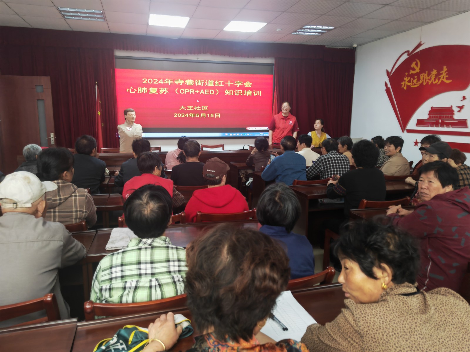 心肺复苏术是公共安全和生命健康教育中的重要一环,是一项与死神赛跑的急救技能,为进一步提高群众对应急救护的认识和意识,拯救生命、降低死亡率,5月15日,寺巷街道红十字会邀请陈银慧老师在大王社区为社区工作人员和辖区居民开展了一场心肺复苏培训。