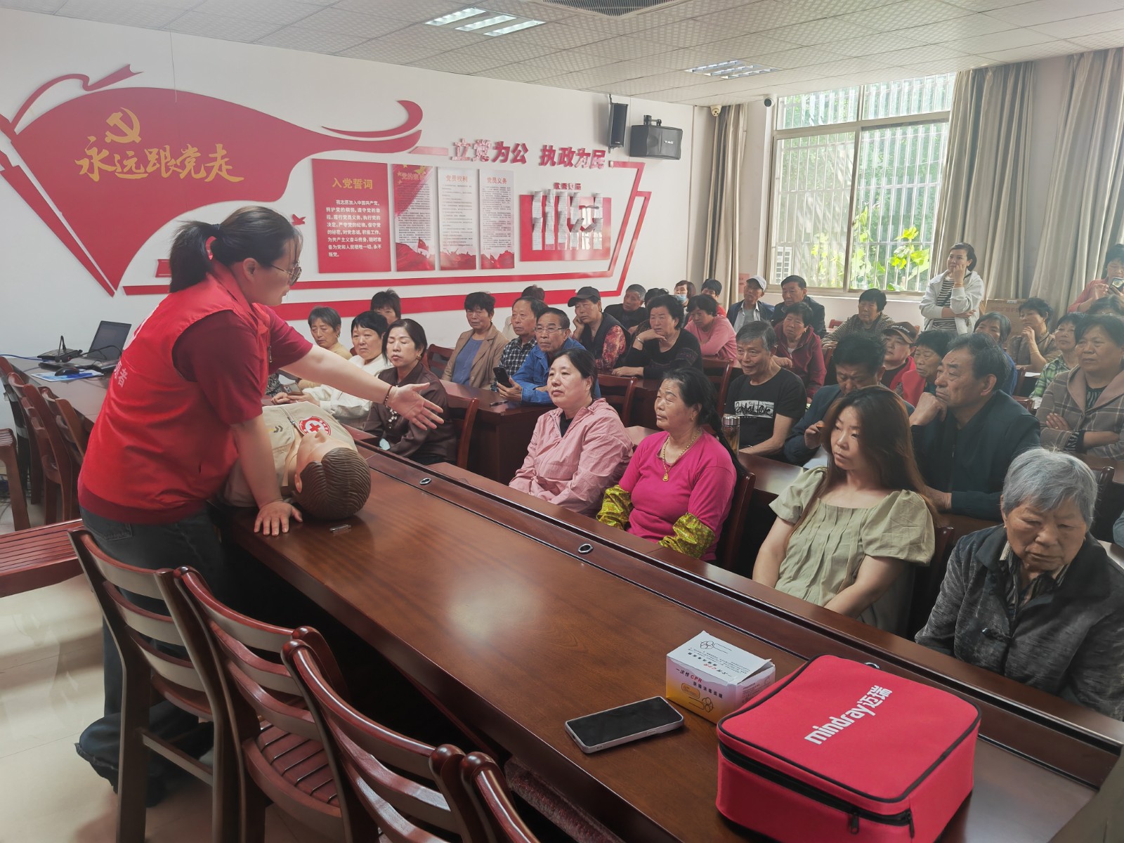 示范后,陈老师请在场群众进行心肺复苏的操作演练,并对操作中存在的问题进行纠正和指导,让大家对心肺复苏的技能有了实践经验。