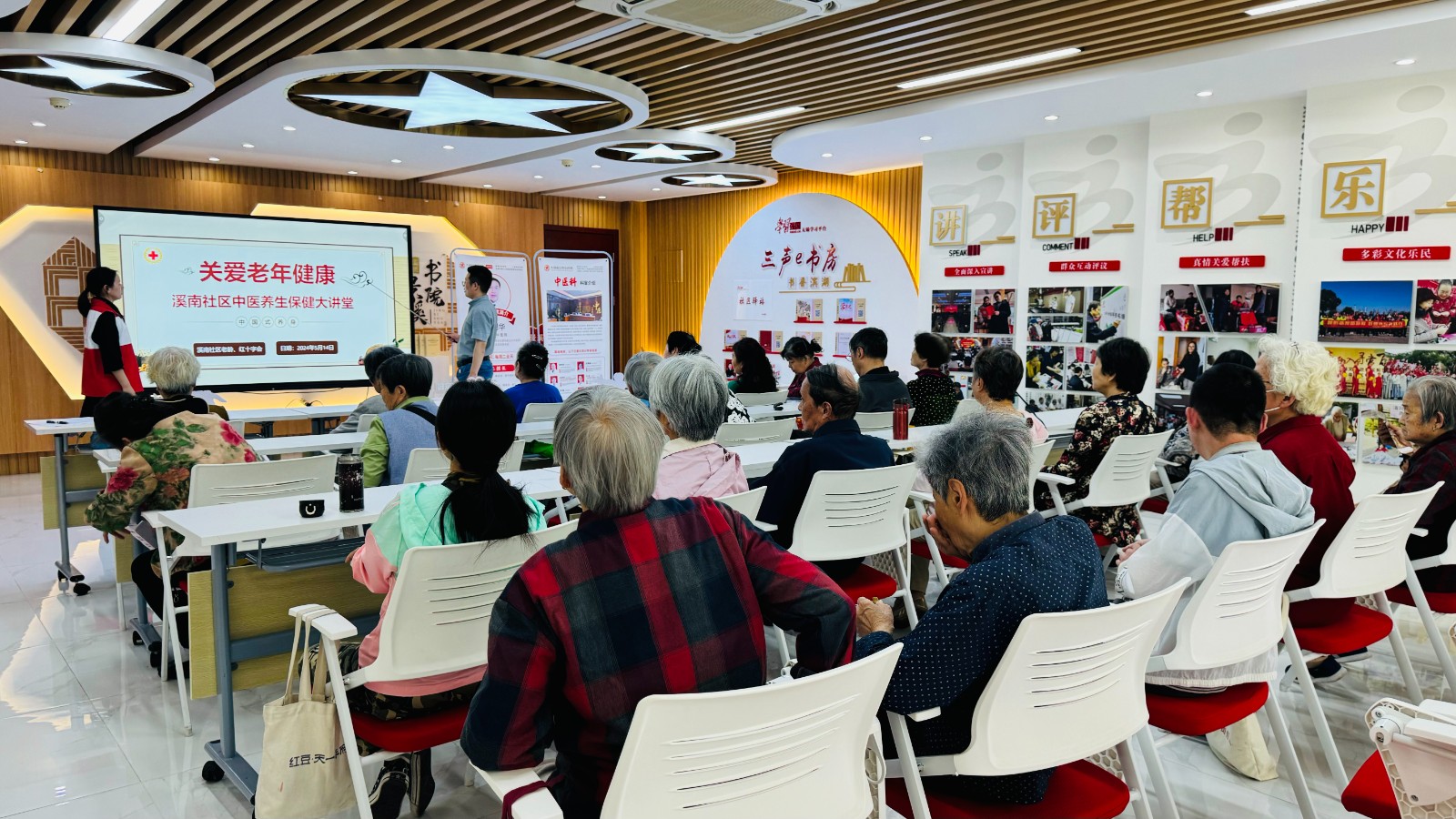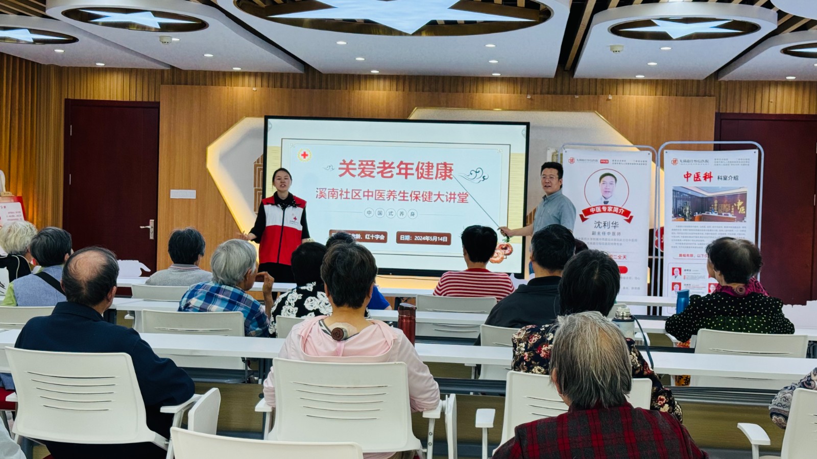 为大力弘扬“人道、博爱、奉献”的红十字精神,更好满足人民群众对中医药的健康需求和精神需求”要求,发挥中医药在老年慢性病诊疗与康复治疗中的优势特色,推动辖区内居民“懂中医、用中医”的文化氛围,溪南社区红十字志愿者联合嘉士恒信医院、安康通组织辖区居民开展了中医药养身讲堂。