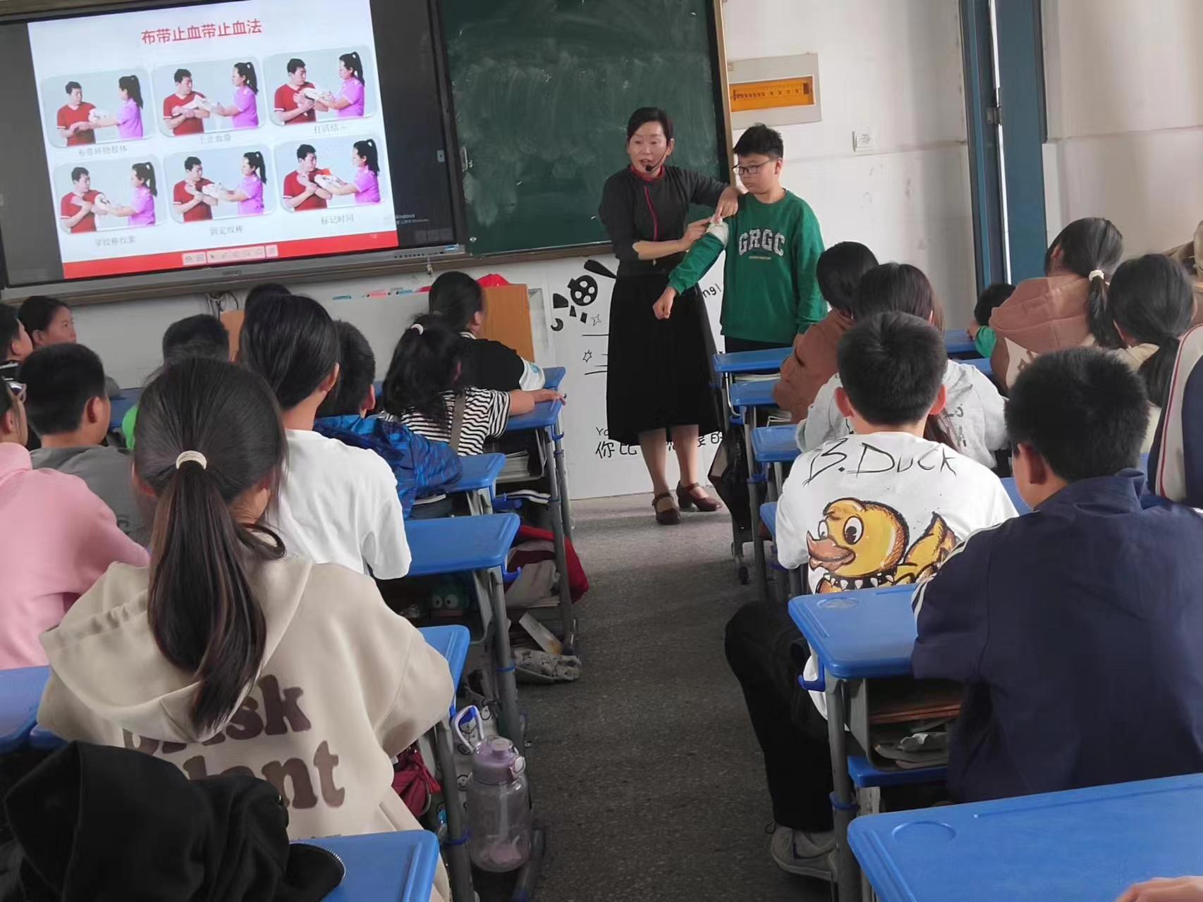 对六年级、七年级学生分别开展了应急救护知识培训,使学生们掌握一些简单的止血包扎方法以及海姆利克急救法等。