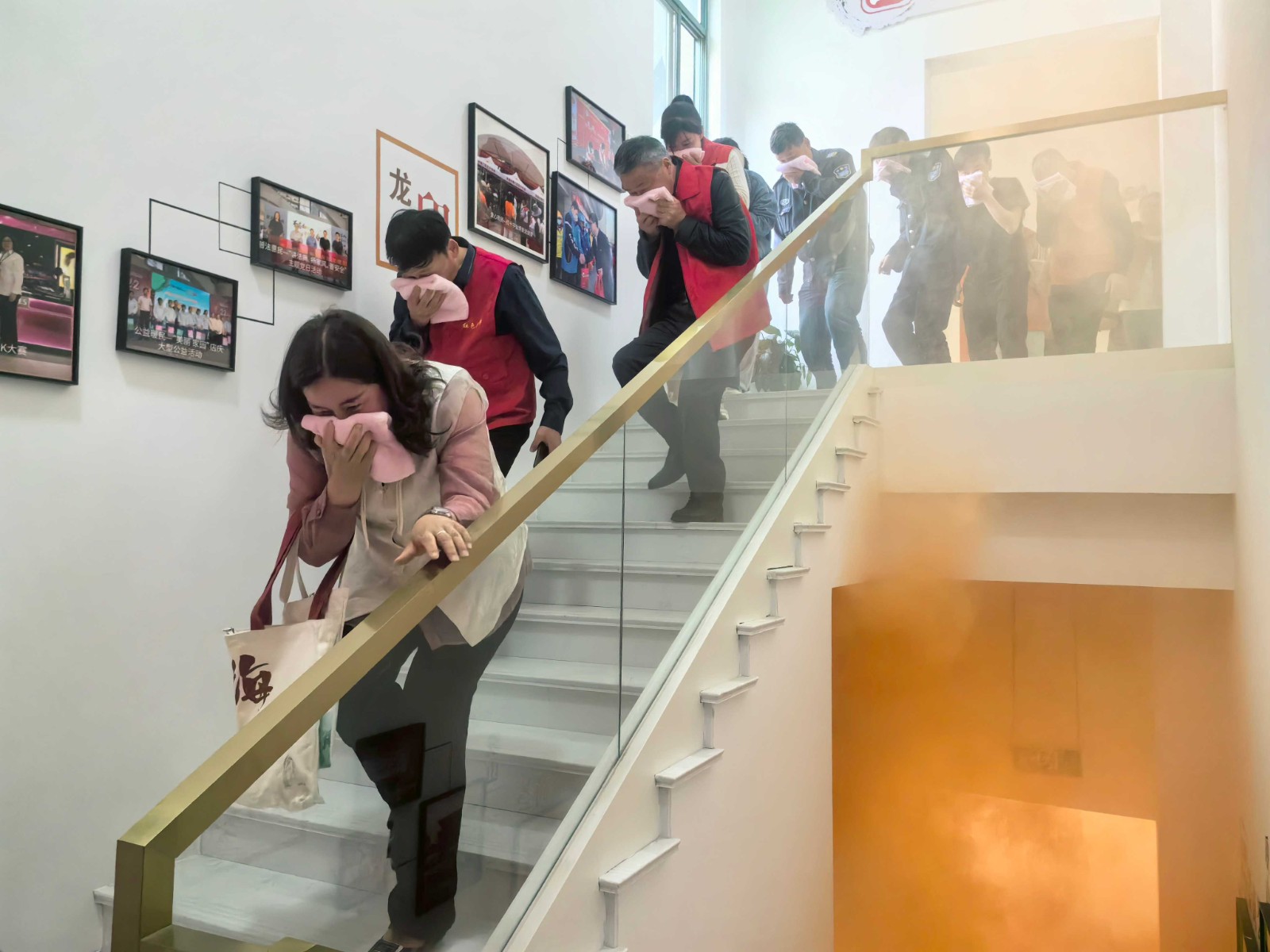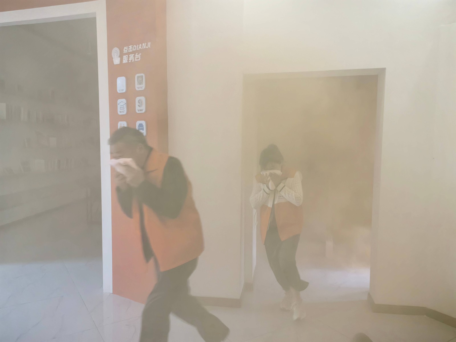 活动中,首先消防大队孙主任运以贴近生活、实用性强的常识入手,向大家讲解了防灾减灾的相关知识和各种灾害的科学应对方法,并结合防灾视频和具体案例,加强了大家对极端性灾害天气的风险识别和自救互救技能的了解,在场物业人员、志愿者、居民群众都纷纷表示受益匪浅。随后,通过烟雾弹演练模拟火灾事故发生,从发现、报告火情,到分级响应,再到疏散、灭火救援,整个演练过程安全、快速,有条不紊。最后,孙主任详细讲解了灭火器的日常检查维护和如何正确使用灭火器。在场人员轮流使用干粉灭火器进行灭火操作,使全体参与演练人员对干粉灭火器的使用、初起火灾的扑救以及灭火过程中的自我保护等方面都有了深刻的认识和了解。