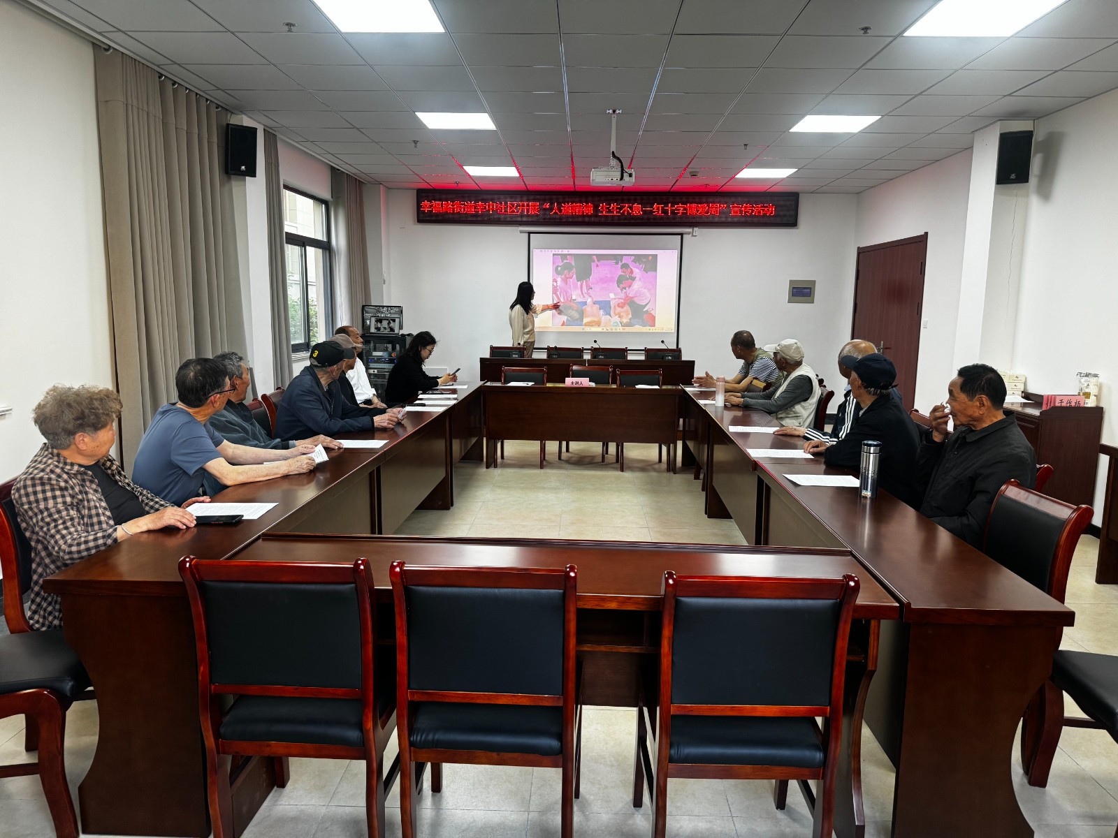 在活动期间,幸中社区开展了"人道精神 生生不息—红十字博爱周”宣传活动,幸中社区社区网格员为居民讲解了红十字会的来源、标志、作用、原则以及对一些简单的救护知识进行了培训。希望通过此次的讲座让更多的居民了解和弘扬红十字精神,吸引更多的热心人士积极投身到红十字志愿服务队伍中。