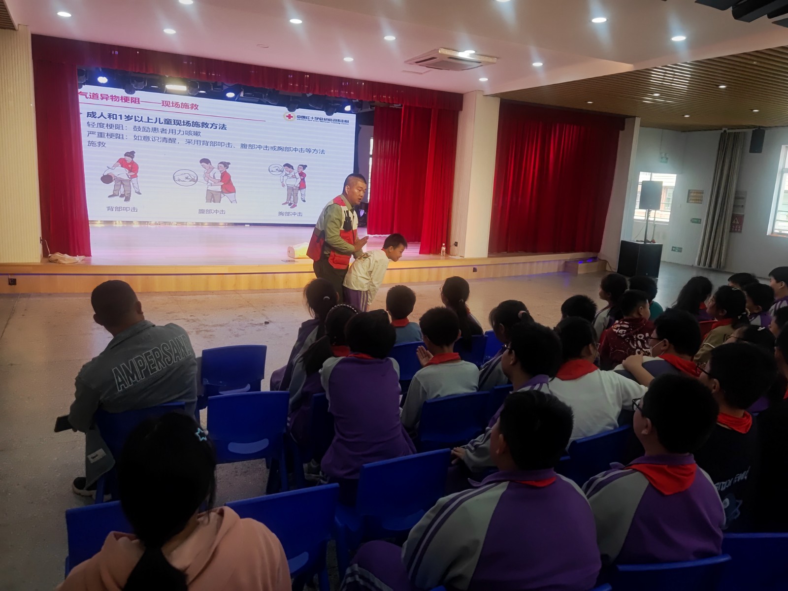5月6日,转水社区博爱家园走进南通市鹤涛小学,红十字救护培训老师包炀炀给师生们带来了一场生动的应急救护生命教育课。包老师结合理论知识和实际救护技巧,对心肺复苏术、AED的使用方法以及海姆立克急救法详细讲解。随后,还与师生们分享了日常生活中容易出现的外伤急救措施、对于不同受伤部位的包扎方法。为了让师生们更直观掌握心肺复苏要领,在现场师生们用模拟人开展心肺复苏和海姆立克实操演练,老师手把手进行急救手法和注意事项教学。师生们纷纷表示受益良多,在今后面对这些应急情况心中也有了底气。