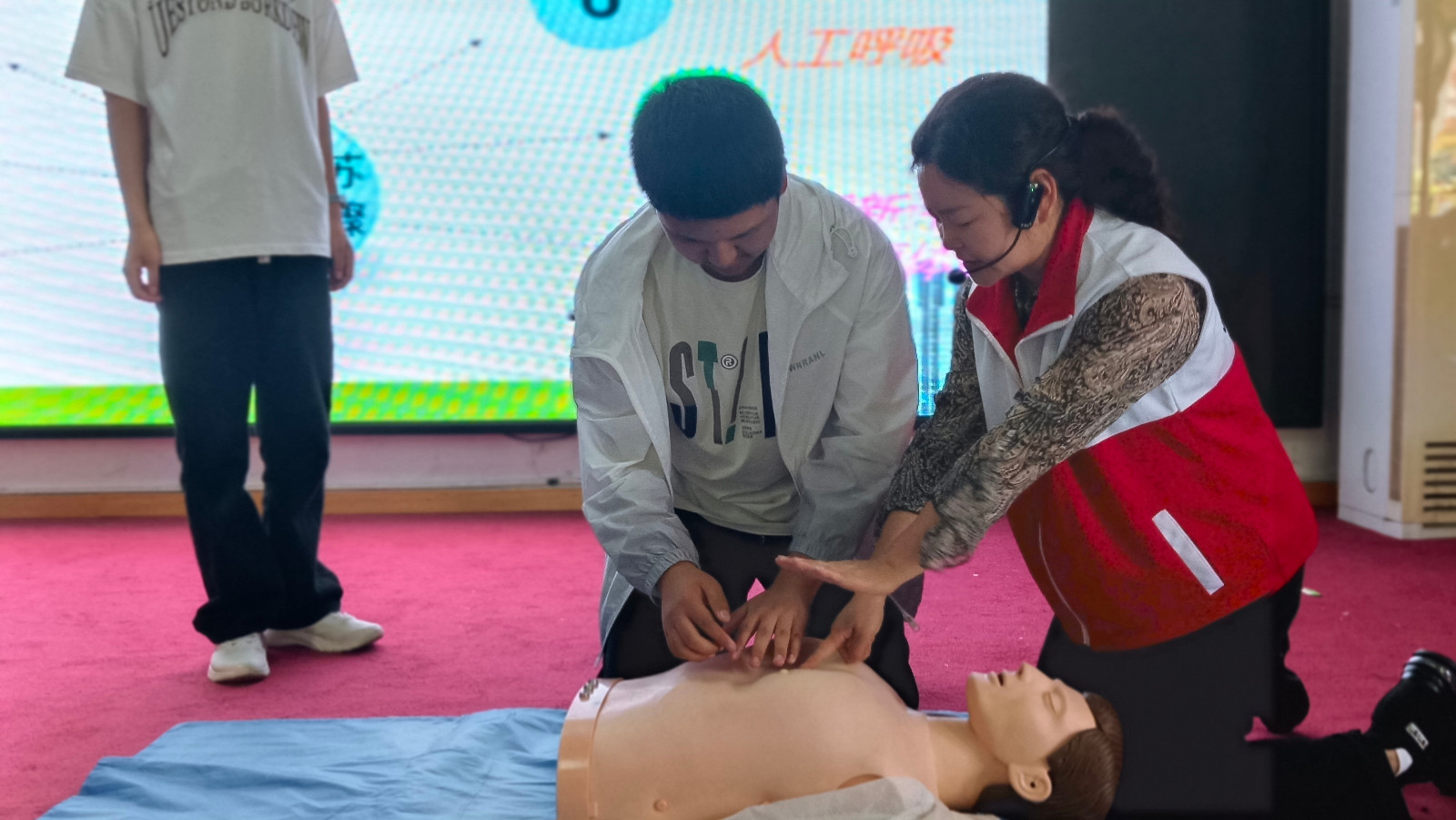 在心肺复苏术模拟操作教学中,讲师逐一讲解了技能知识点,并请部分学生上台进行模拟操作。同学们跟着老师的动作一起学习,掌握到了相关的基本技能,为他们的人生安全也增添了一份保障。