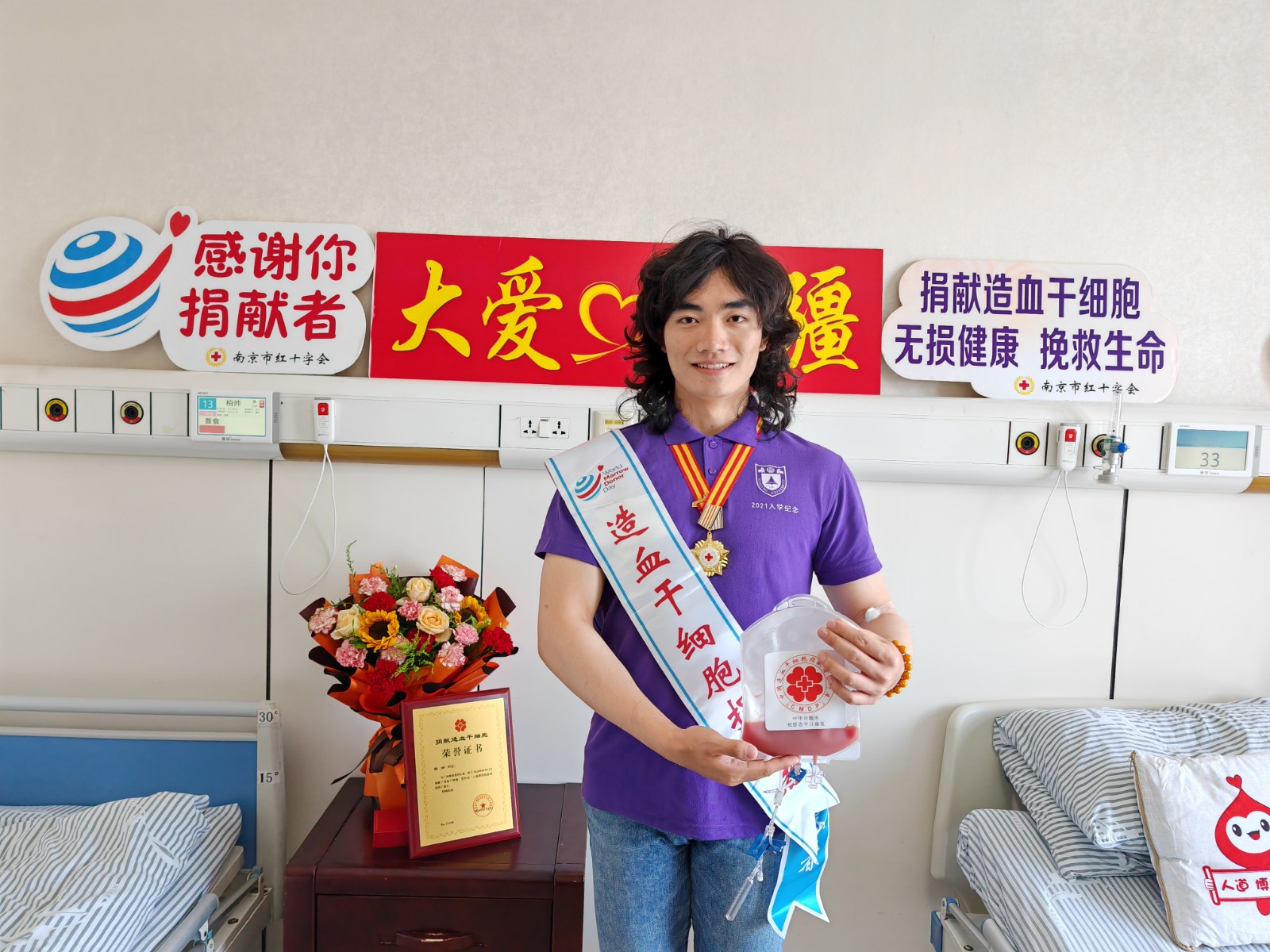 他是江苏省第1367位、南京市第186位、鼓楼区第21位造血干细胞捐献者,同时,他亦是南京大学首例捐献造血干细胞的大学生,展现了青年学子的卓越风采与力量。